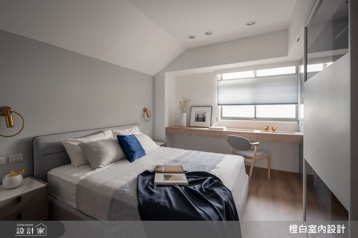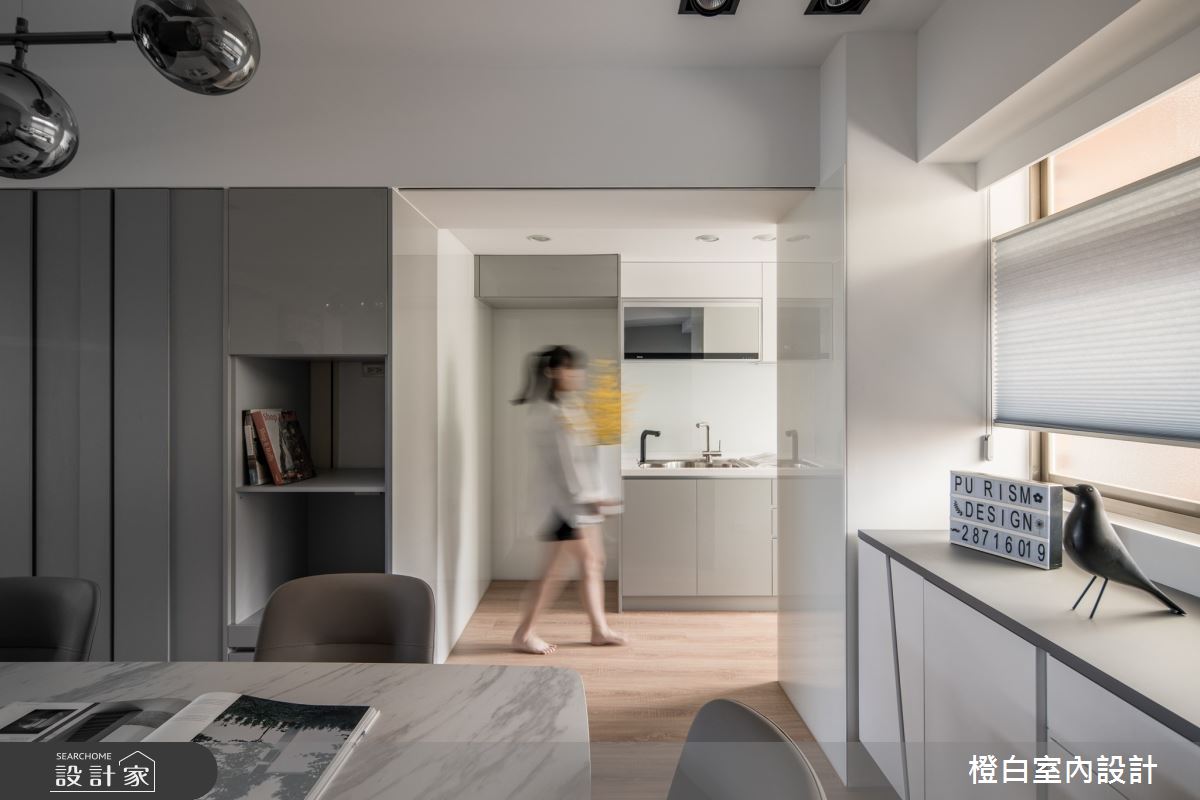 本案為橙白室內裝修設計的42坪現代風中古屋(5~15年)設計作品,格局為單層三房的居住空間。居住成員包含2位大人。全室建材的搭配,應用石材、人造石、鐵件、美耐板、波麗板、超耐磨木地板、強化優白清波、明鏡、強化茶玻、強化烤漆玻璃、不鏽鋼板、鍍鈦條、磁磚、乳膠漆,展現溫馨的居家氛圍。