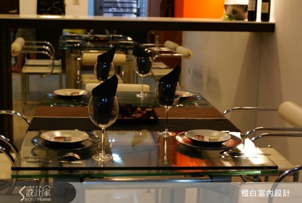 本案位於台中市區,從事婚紗攝影的屋主,對於美感及品味早已擁有深厚的素養,想以純白色為空間背景,點綴些許可愛浪漫的元素,成就出獨特的個人風格。環顧開放相連的客廳、餐廳以及書房,整體營造出來的空間感是極為舒服、悠閒的,俐落的幾何線條及純白色的家具,配上柔和的間接光源,共同塑造出舒適宜人的環境。除此之外,注入了許多活潑而浪漫的裝飾元素,不僅豐富了空間,更展現出屋主的性格。在一派純淨的客廳放上鮮豔的橘色沙發,配上同色系的抱枕,瞬間讓整個空間變得活潑明亮。與客廳相連的書房以白色系的開放櫃體,放上主人蒐集的各色飾品,成為最佳的展示櫃。客廳外側日照充足的陽台,則是女主人悉心照顧的植栽,顯得綠意盎然。與客廳相連的餐廳,最引人矚目的是從天花垂降下來的水晶燈,帶來垂直景深的變化。值得一提的是兩間風格不同的廁所,一間使用水泥粉光材質,展現質樸自然的意味,另一間則大膽地在壁面貼滿深色茶鏡,相互映射的鏡面,創造出魔幻迷離的視覺效果,讓人有置身於渡假飯店的感受。裝修費用:101~199萬。