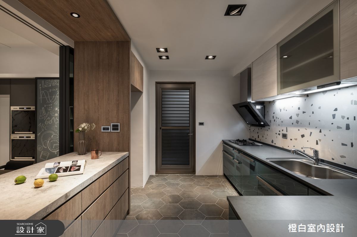來自橙白室內裝修設計的50坪現代風住宅案,屋主一家人共有2位大人、2位小孩,是一間單層中古屋(5~15年)的四房格局,設計師藉由建材以鐵件烤漆、跳色漆、黑板漆、美耐板、灰玻、灰鏡、銀河灰仿古石材、水墨江南仿古石材、六角花磚、大板磚的搭配應用,實現一家人的理想生活。