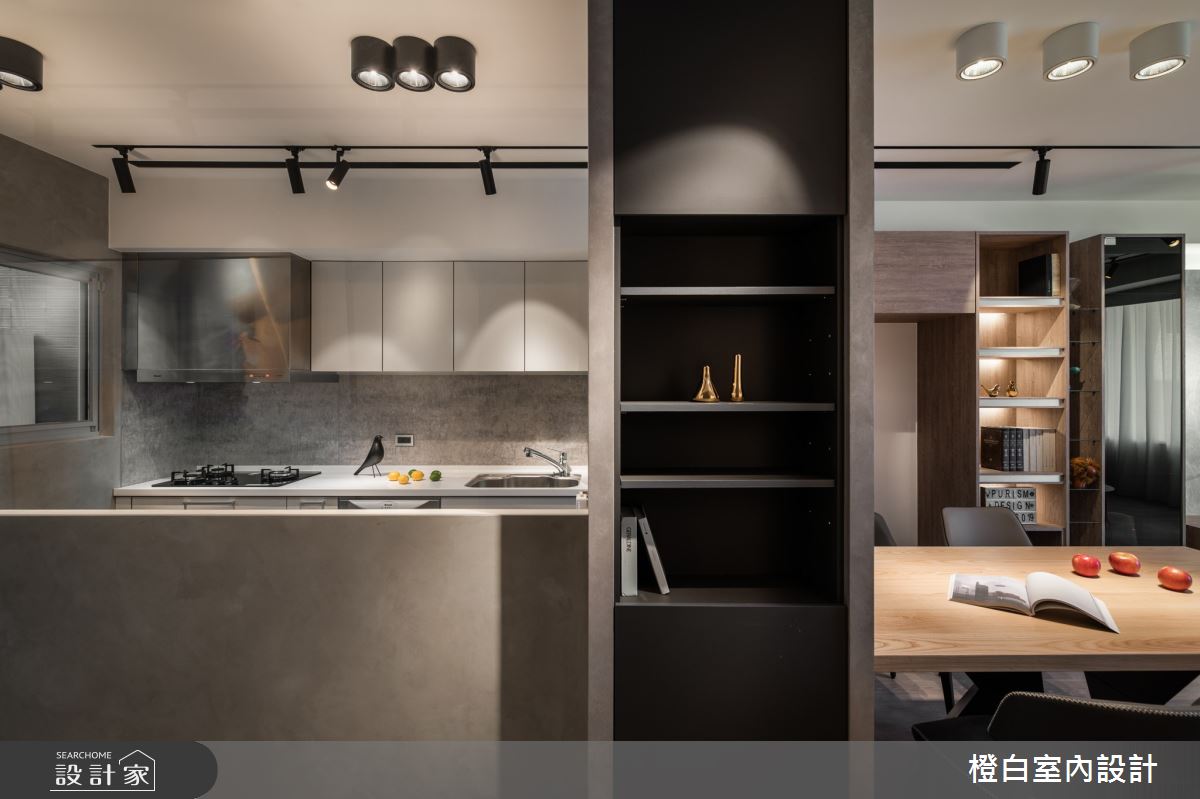 來自橙白室內裝修設計的18坪現代風住宅案,屋主一家人共有1位大人,是一間單層新成屋(5年以下)的兩房格局,設計師藉由建材以鐵件烤漆、跳色漆、黑板漆、美耐板、灰玻、灰鏡、銀河灰仿古石材、石皮、六角花磚的搭配應用,實現一家人的理想生活。