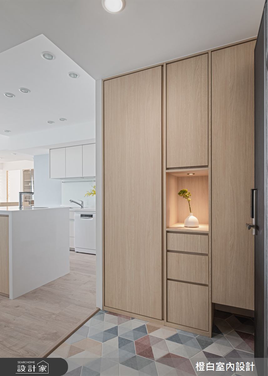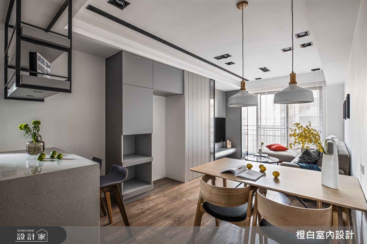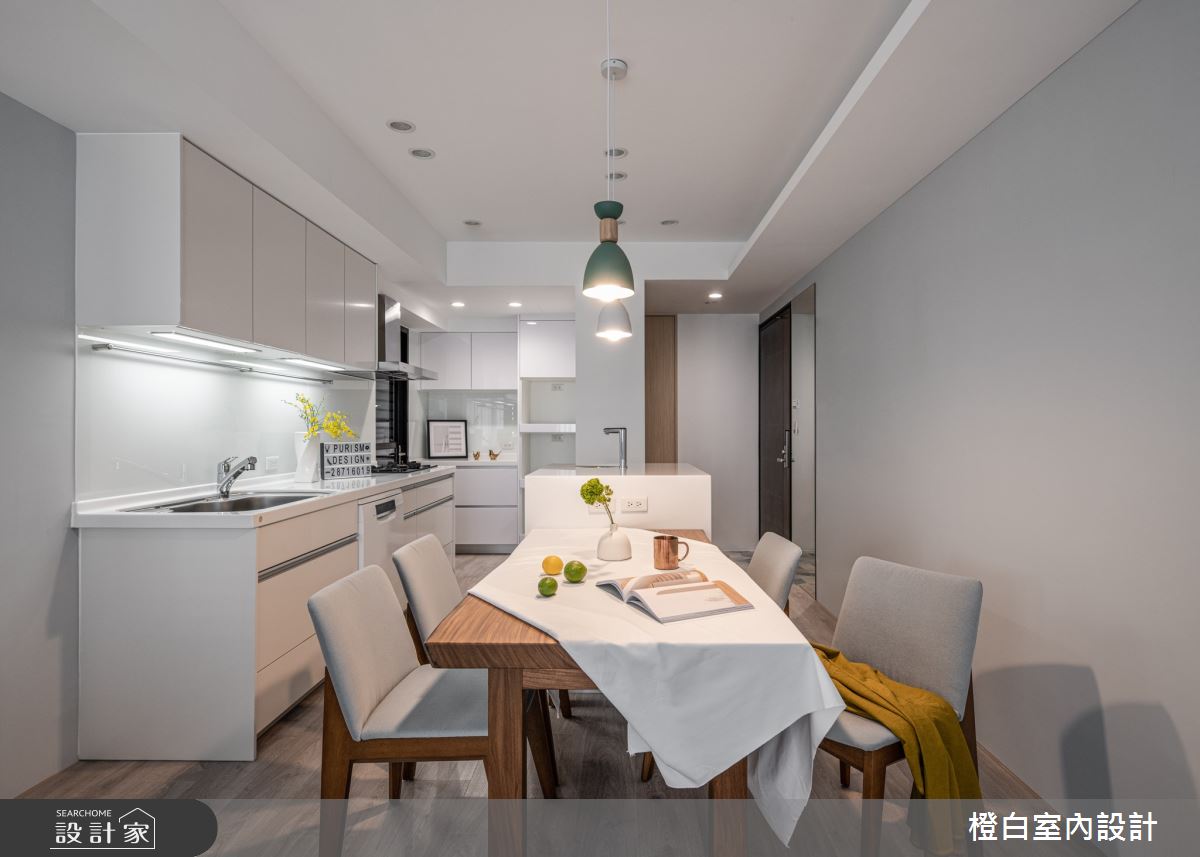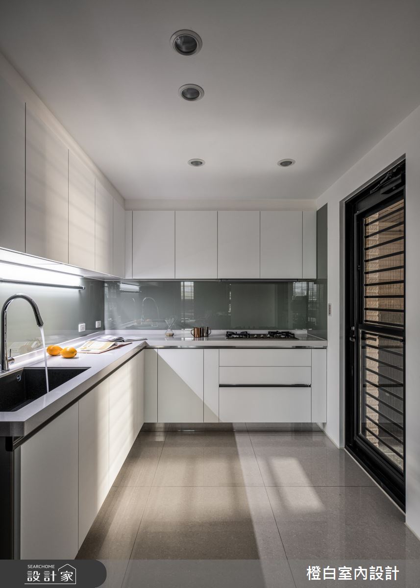來自橙白室內裝修設計的18坪現代風住宅案,屋主一家人共有2位大人、1位小孩,是一間單層新成屋(5年以下)的三房格局,設計師藉由建材以長虹玻璃、鐵件烤漆、跳色漆、美耐板、人造石的搭配應用,實現一家人的理想生活。