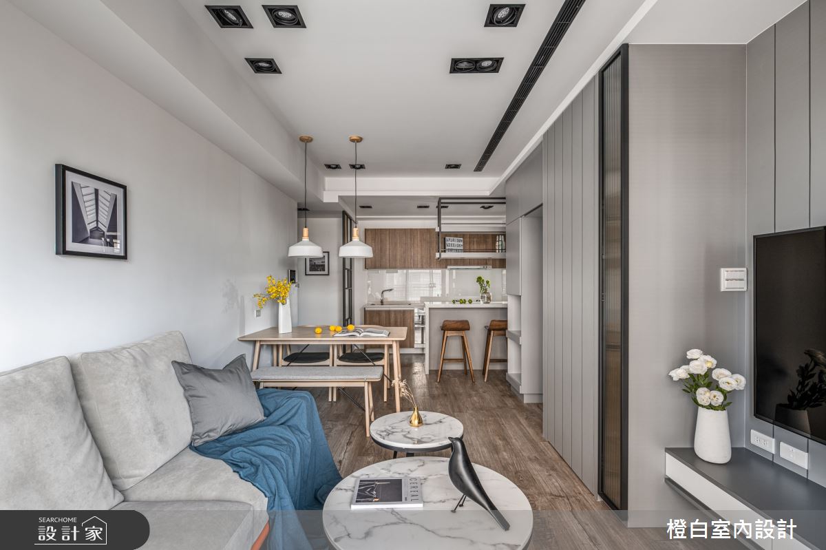 由橙白室內裝修設計精心規劃的25坪三房住宅空間,家庭成員一共有1位大人。因應屋主需求,設計師運用北歐風作為主軸,搭配鐵件烤漆、跳色漆、美耐板、灰玻、烤漆玻璃,打造全家人的夢想家居。