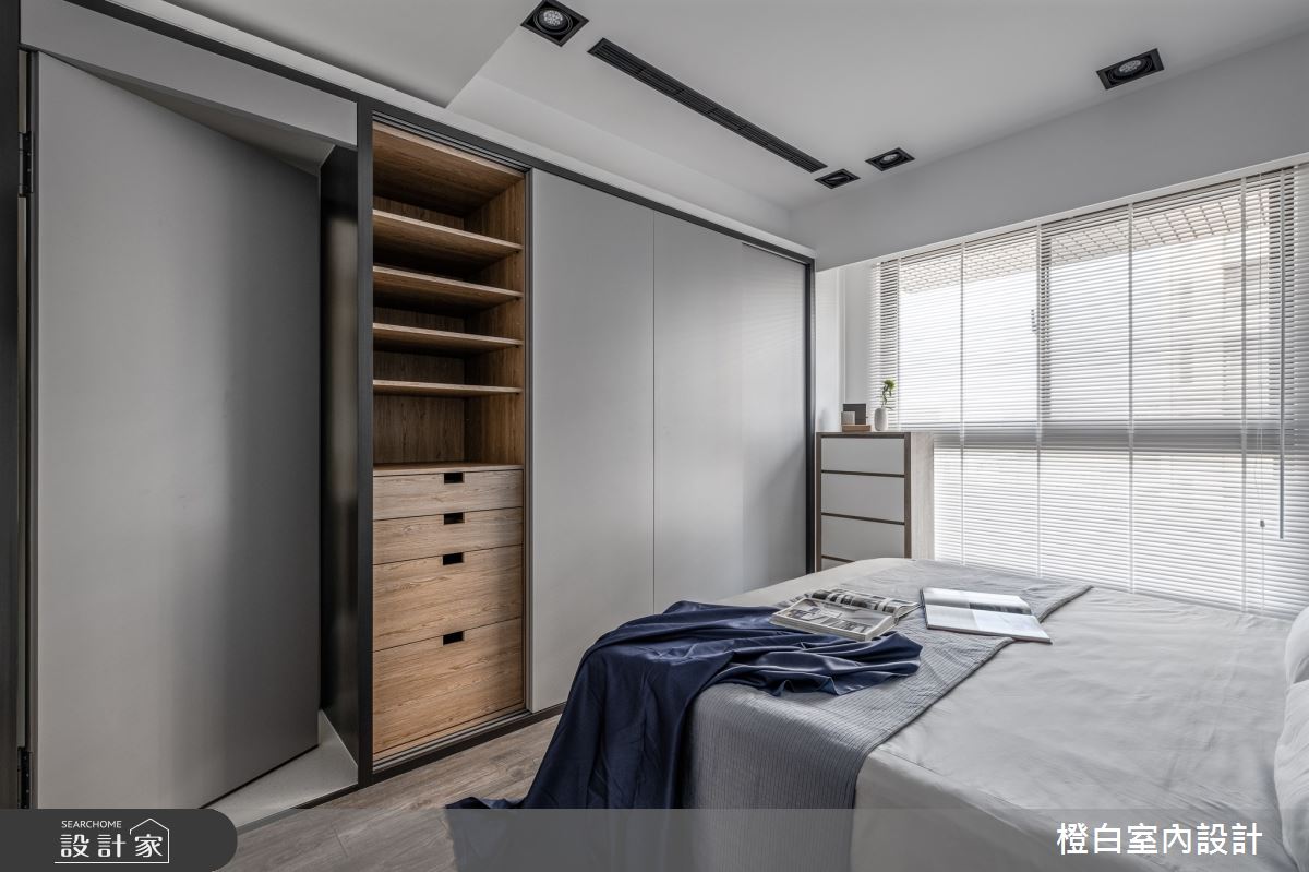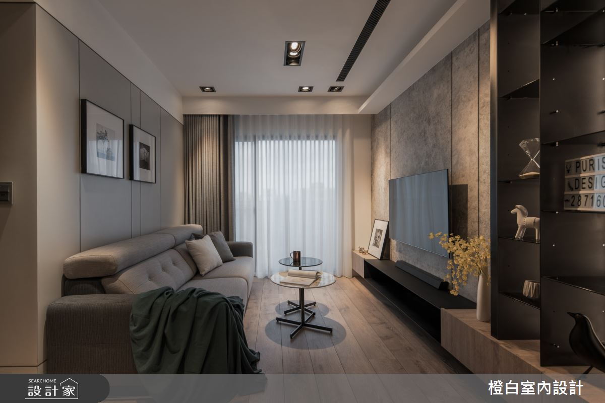 本案為橙白室內裝修設計的34坪混搭風新成屋(5年以下)設計作品,格局為單層三房的居住空間。居住成員包含2位大人、2位小孩。全室建材的搭配,應用鐵件烤漆、跳色漆、礦物塗料漆、美耐板、灰玻、粉玻、灰鏡、藍鏡,展現溫馨的居家氛圍。