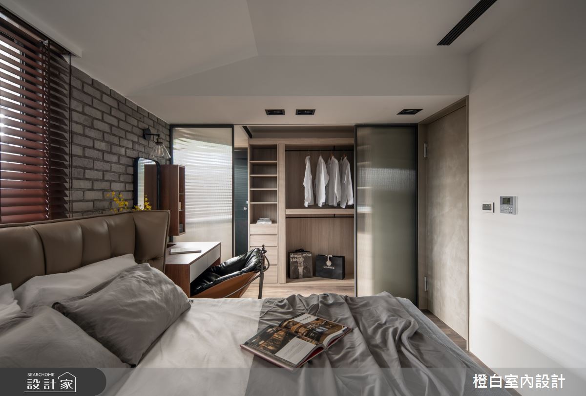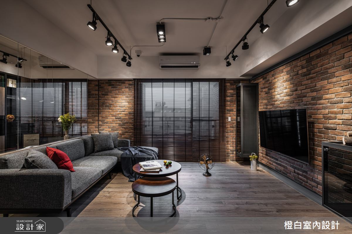 橙白室內裝修設計以文化石、鐵件烤漆、跳色漆、美耐板、灰玻、灰鏡的搭配應用,呈現混搭風居家氛圍,將此間32坪、四房、單層、新成屋(5年以下)打造成舒適愜意的家庭空間,完成1位大人全家人的夢想之居。