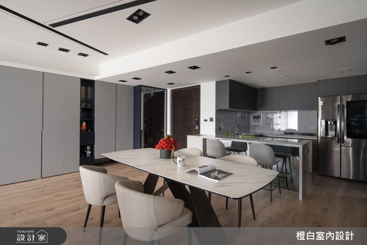 由橙白室內裝修設計精心規劃的38坪四房住宅空間,家庭成員一共有2位大人、1位小孩。因應屋主需求,設計師運用現代風作為主軸,搭配磁性漆/磁性黑板漆、鐵件、烤漆、大理石、灰玻璃、美耐板、白板牆,打造全家人的夢想家居。
