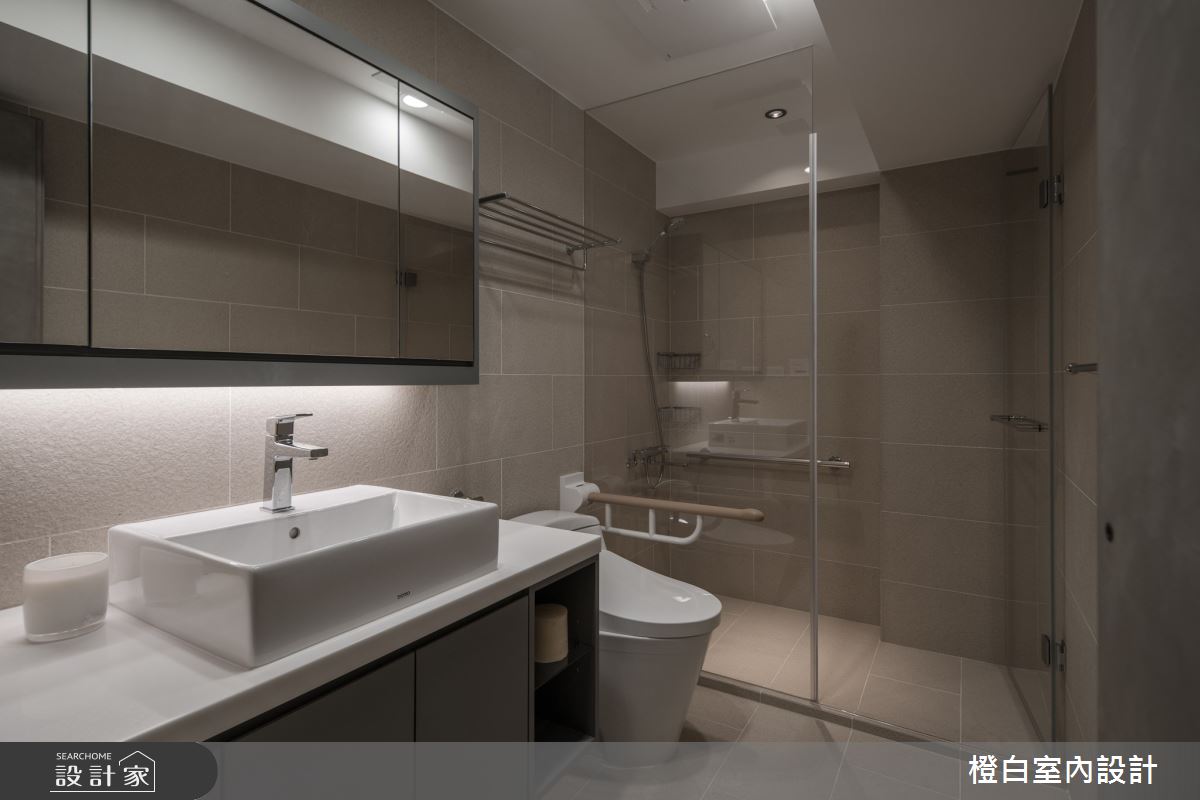 橙白室內裝修設計以文化石、實木、石皮、鐵件烤漆、跳色漆、特殊漆、美耐板、灰玻、灰鏡、烤漆玻璃、小冰柱玻璃的搭配應用,呈現混搭風居家氛圍,將此間25坪、三房、單層、中古屋(5~15年)打造成舒適愜意的家庭空間,完成3位大人全家人的夢想之居。
