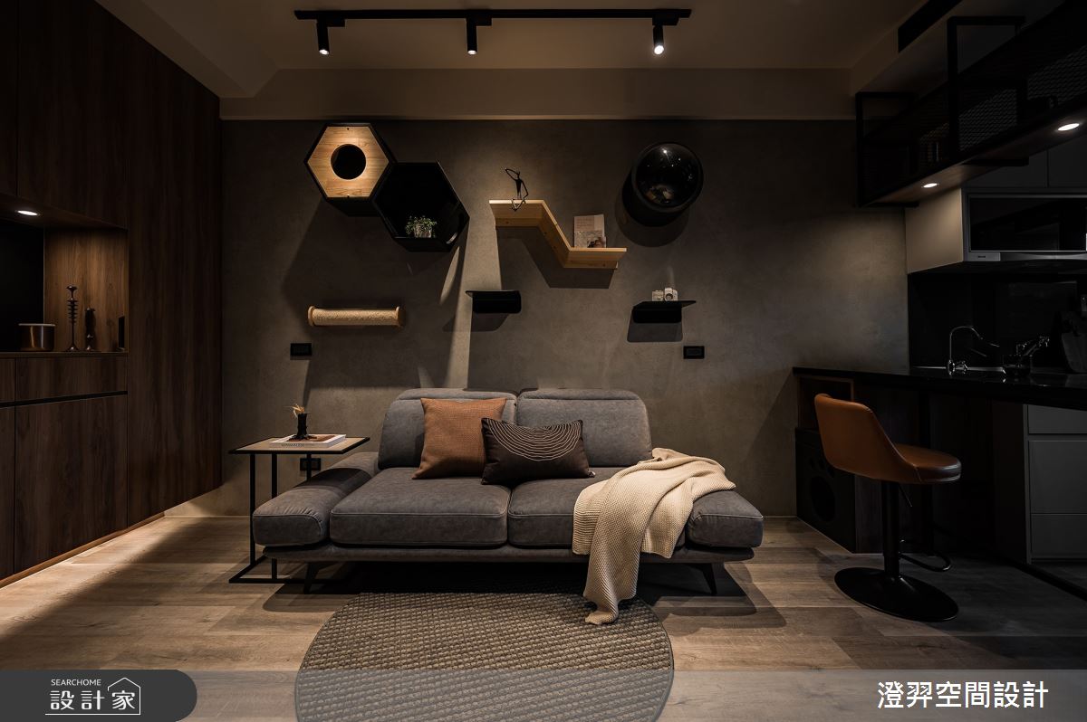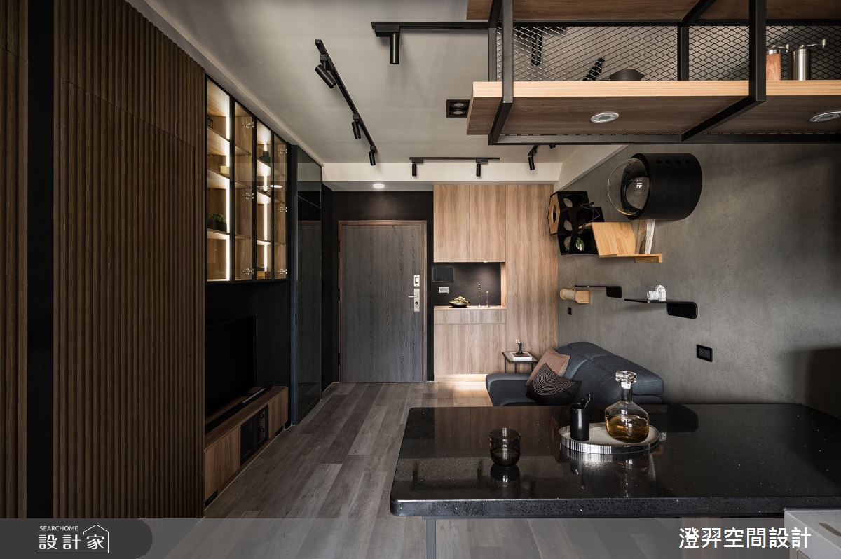 由澄羿空間設計精心規劃的12坪兩房住宅空間,家庭成員一共有1位大人。因應屋主需求,設計師運用工業風作為主軸,搭配油漆、SPC地板、鐵件、灰鏡、系統板材、闊石、軌道燈、spiver藝術塗料,打造全家人的夢想家居。
