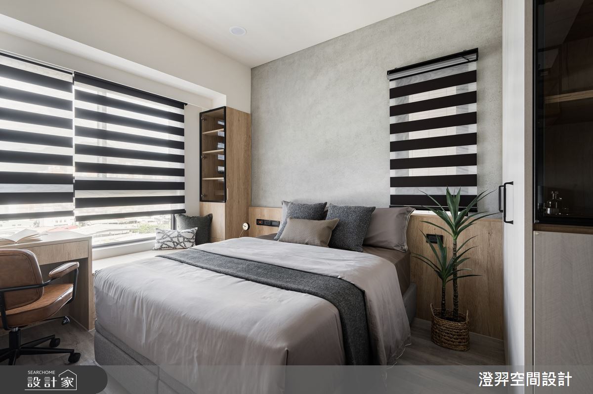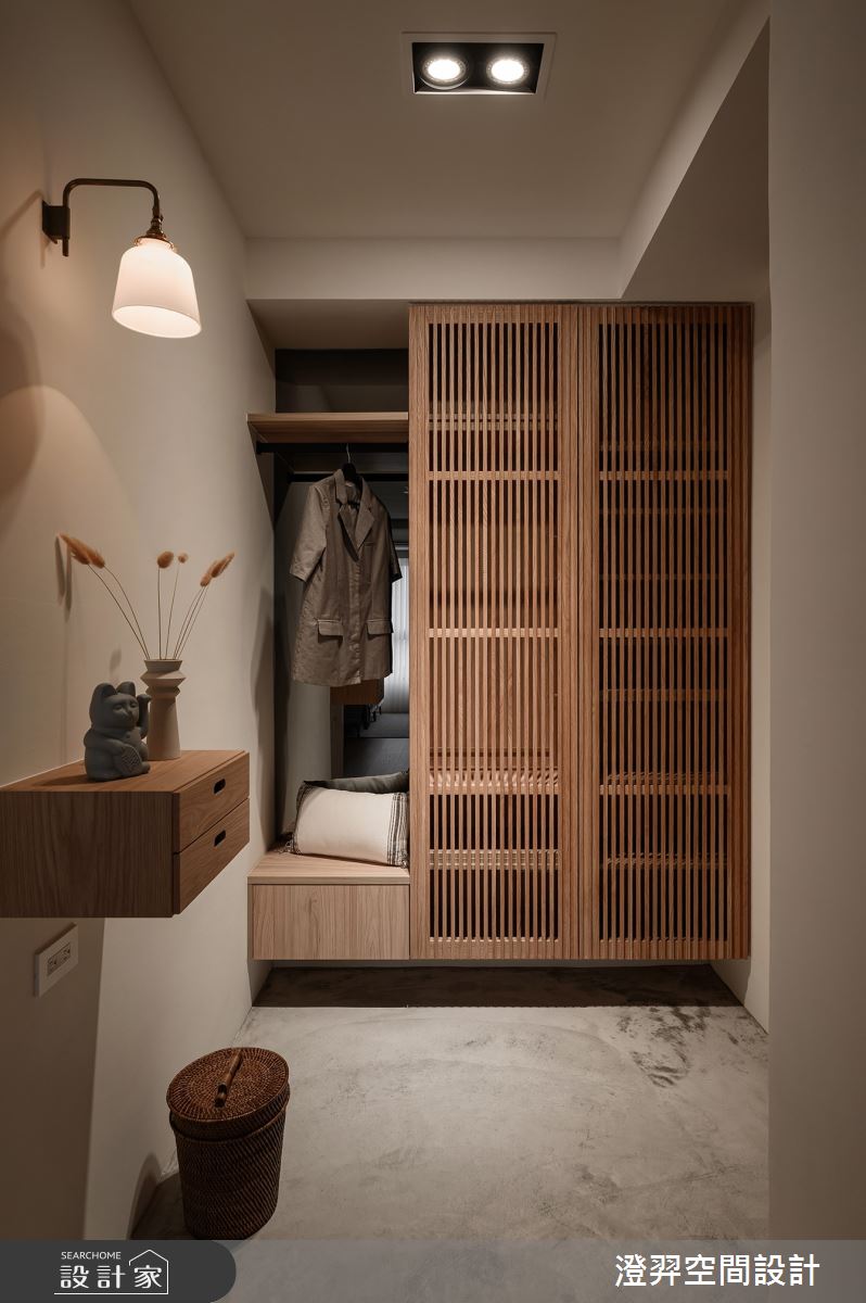 由澄羿空間設計精心規劃的16坪兩房住宅空間,家庭成員一共有1位大人。因應屋主需求,設計師運用日式無印風作為主軸,搭配油漆、鐵道磚、超耐磨木地板、灰鏡、木作貼皮、系統板材、水泥/水泥粉光、木百葉、噴漆,打造全家人的夢想家居。