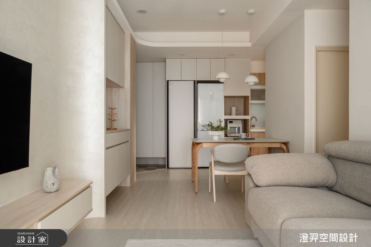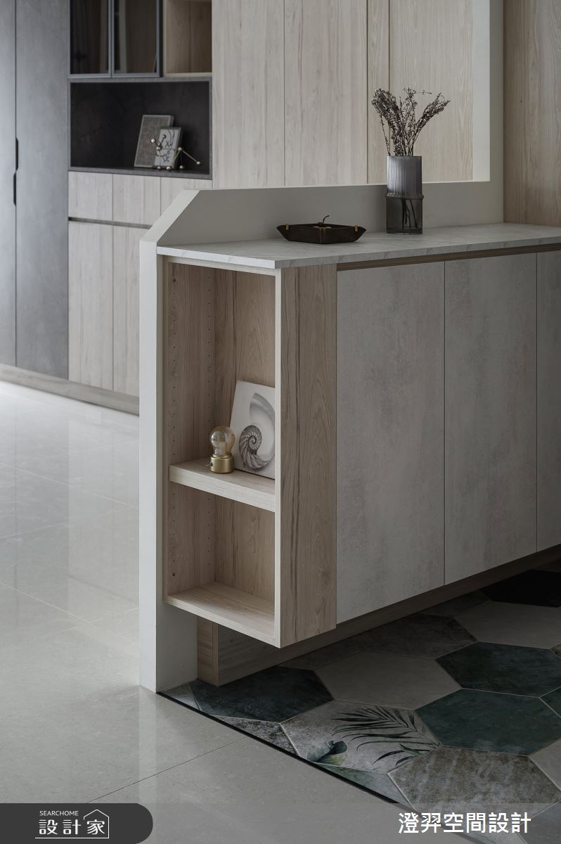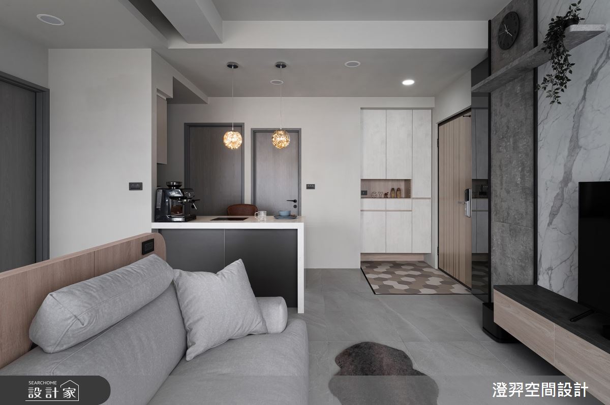 由澄羿空間設計精心規劃的17坪兩房住宅空間,家庭成員一共有2位大人。因應屋主需求,設計師運用現代風作為主軸,搭配六角磚/蜂巢磚、水泥漆、木地板、灰鏡、木作貼皮、系統板材、人造石,打造全家人的夢想家居。