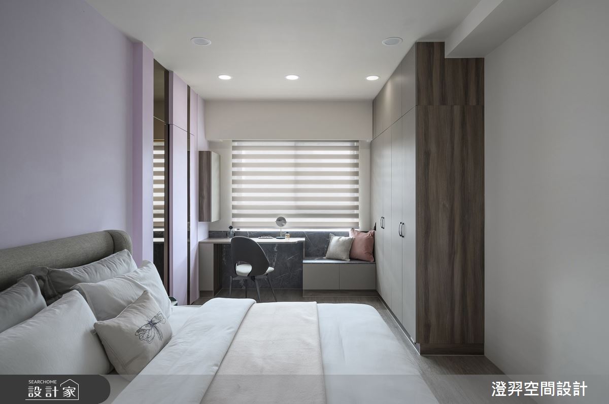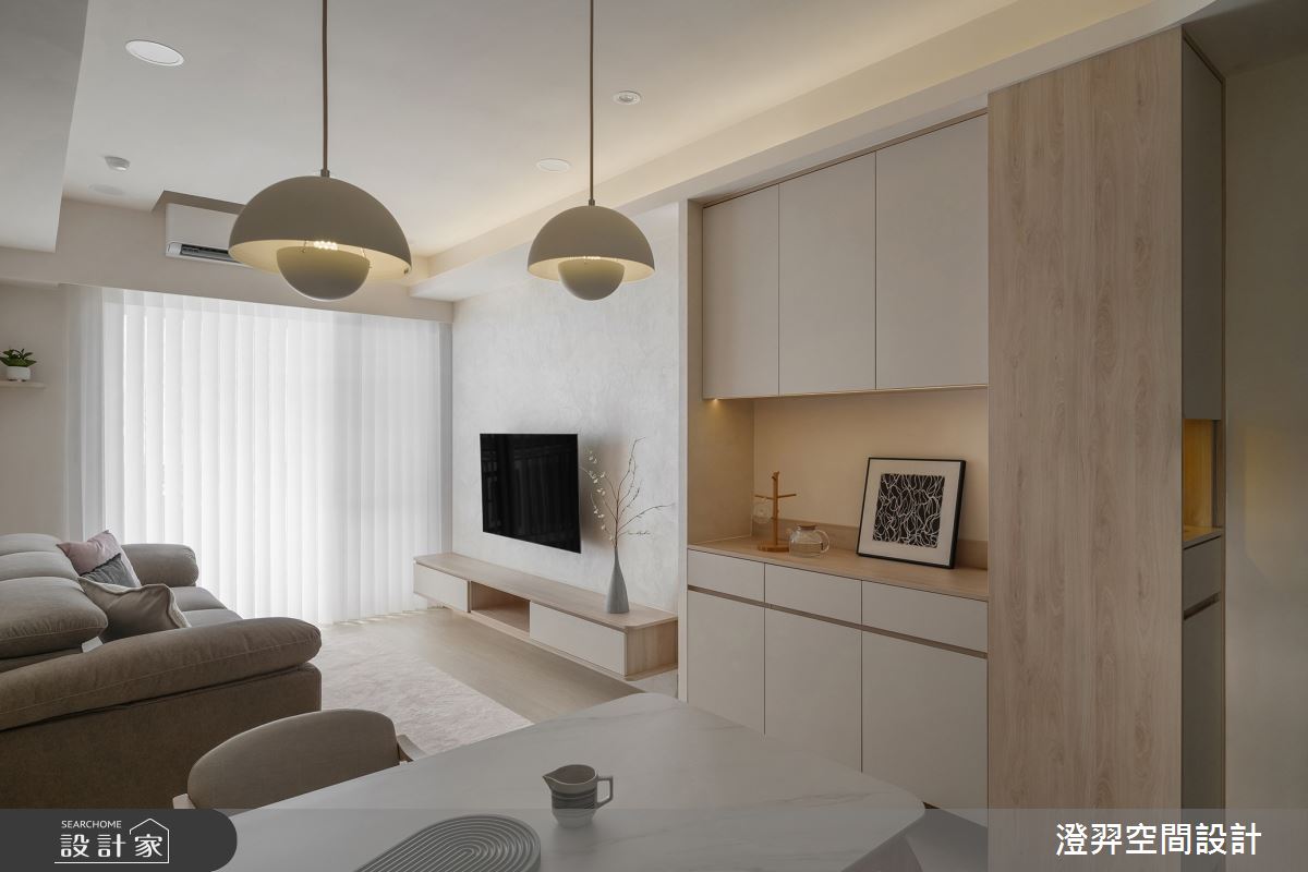 本案為澄羿空間設計的35坪現代風新成屋(5年以下)設計作品,格局為單層四房的居住空間。居住成員包含3位大人。全室建材的搭配,應用乳膠漆、六角磚/蜂巢磚、超耐磨木地板、茶鏡、木作貼皮、系統板材、spiver藝術塗料,展現溫馨的居家氛圍。