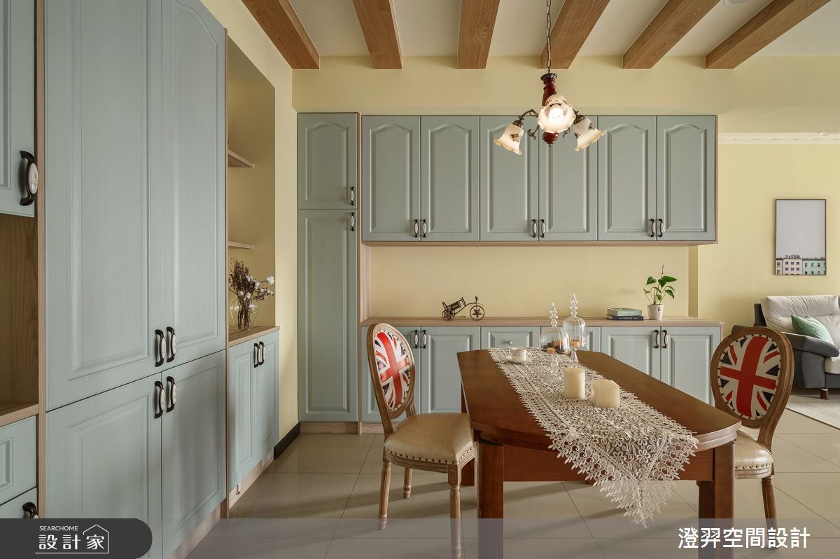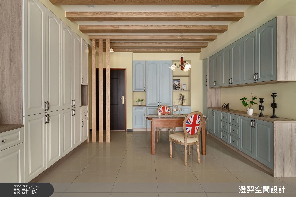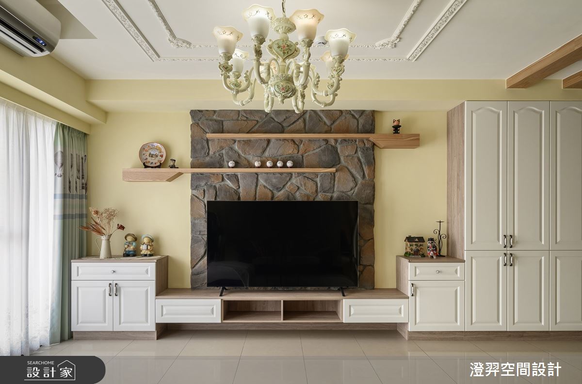 本案為澄羿空間設計的32坪鄉村風新古屋(10年以下)設計作品,格局為單層三房的居住空間。居住成員包含2位大人。全室建材的搭配,應用油漆、文化石、木作貼皮、系統板材、美式線板,展現溫馨的居家氛圍。