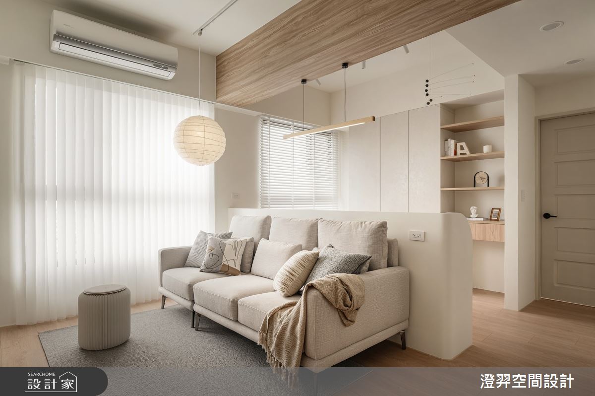 澄羿空間設計以油漆、超耐磨木地板、鐵件、木作貼皮、系統板材、噴漆、spiver藝術塗料的搭配應用,呈現現代風居家氛圍,將此間14.5坪、兩房、單層、新成屋(5年以下)打造成舒適愜意的家庭空間,完成1位大人全家人的夢想之居。