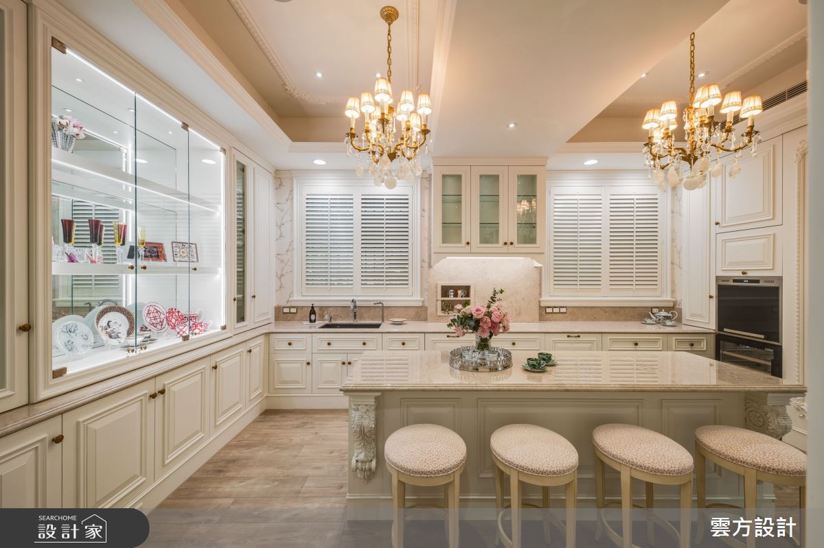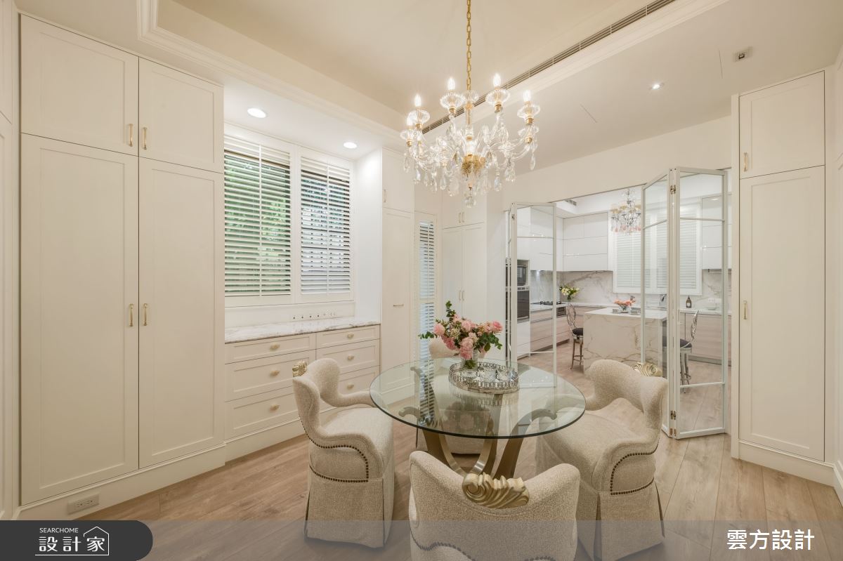 由雲方設計精心規劃的110坪四房住宅空間,家庭成員一共有2位大人、2位小孩。因應屋主需求,設計師運用新古典作為主軸,搭配壁紙、超耐磨木地板、石英磚/拋光石英磚、鐵件、鍍鈦金屬、木作貼皮、系統板材、大理石、磁磚、水泥/水泥粉光、木百葉、賽麗石、石材、線板、噴漆,打造全家人的夢想家居。