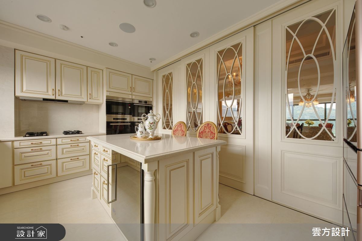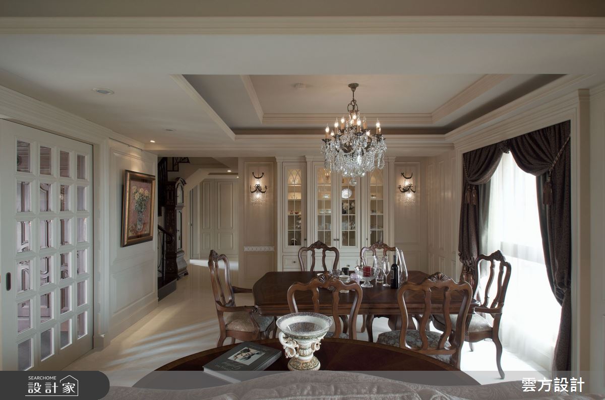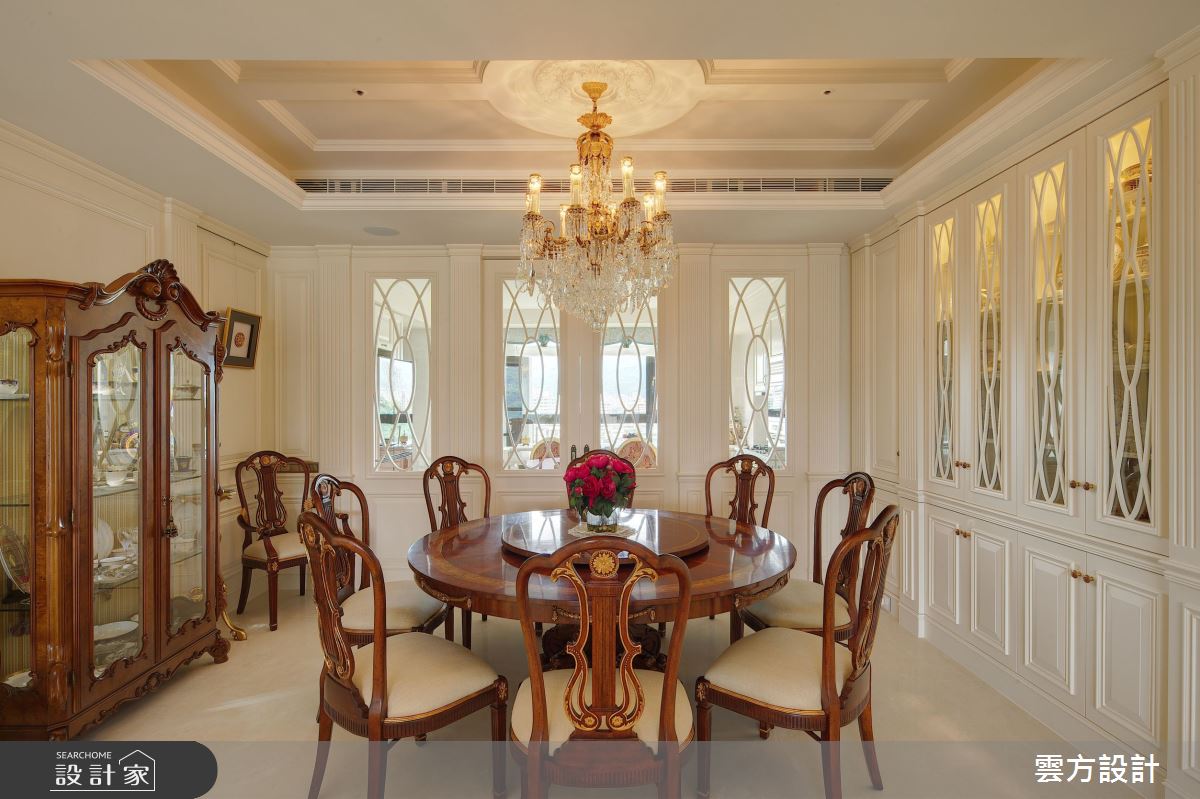 來自雲方設計的100坪新古典住宅案,屋主一家人共有2位大人、3位小孩,是一間單層毛胚屋的四房格局,設計師藉由建材以油漆、乳膠漆、花磚、壁紙、海島型木地板、石英磚/拋光石英磚、鐵件、烤漆、壓克力、大理石、磁磚、人造石、賽麗石、石材、繃布、線板、噴漆的搭配應用,實現一家人的理想生活。