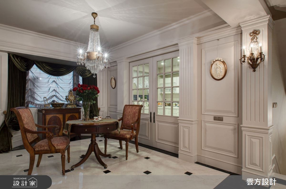 由雲方設計精心規劃的65坪兩房住宅空間,家庭成員一共有2位大人。因應屋主需求,設計師運用新古典作為主軸,搭配乳膠漆、壁紙、海島型木地板、石英磚/拋光石英磚、鐵件、茶玻、木作貼皮、大理石、磁磚、木百葉、賽麗石、石材、線板、噴漆,打造全家人的夢想家居。