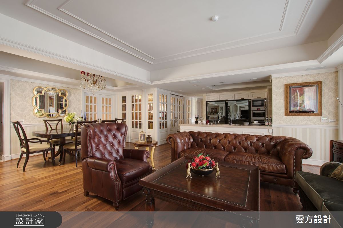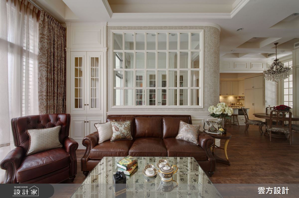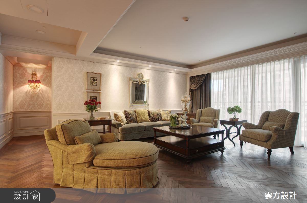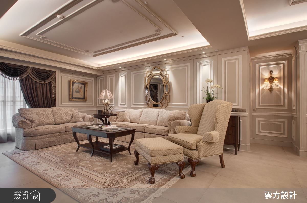 本案為雲方設計的70坪新古典毛胚屋設計作品,格局為單層三房的居住空間。居住成員包含2位大人、1位小孩。全室建材的搭配,應用乳膠漆、花磚、壁紙、超耐磨木地板、石英磚/拋光石英磚、鐵件、茶玻、木作貼皮、烤漆、壓克力、大理石、磁磚、木百葉、賽麗石、石材、線板、噴漆,展現溫馨的居家氛圍。