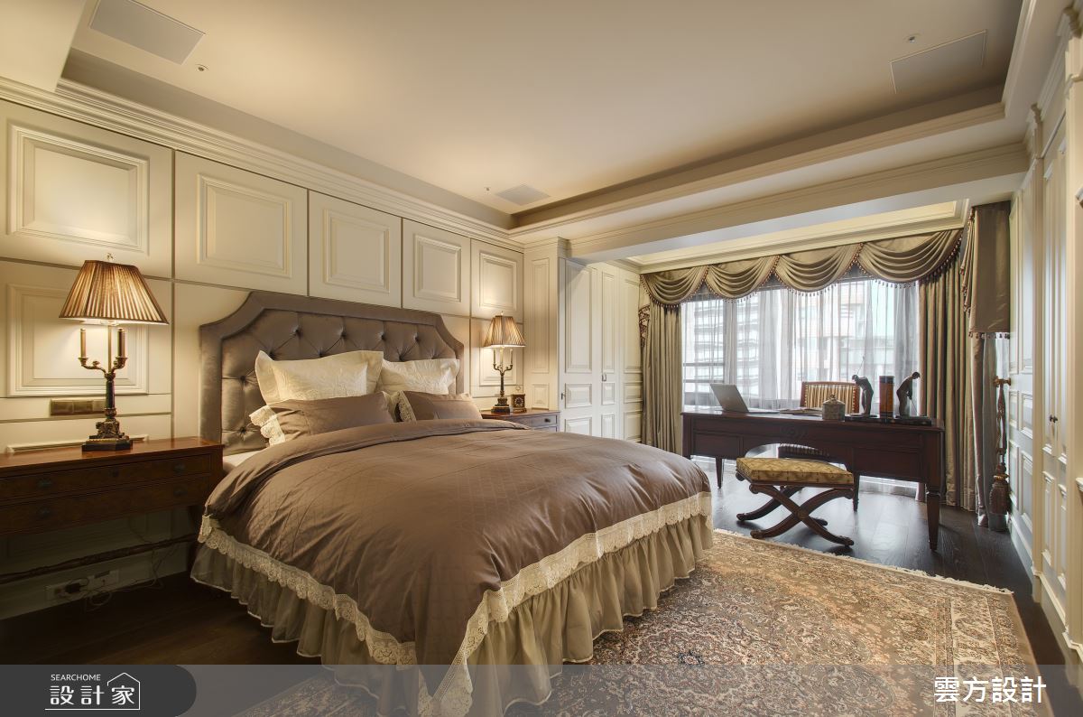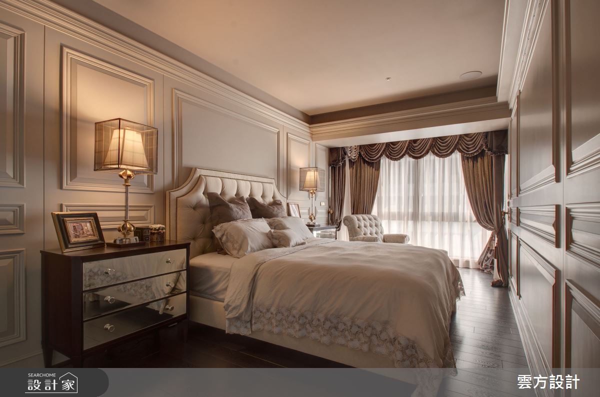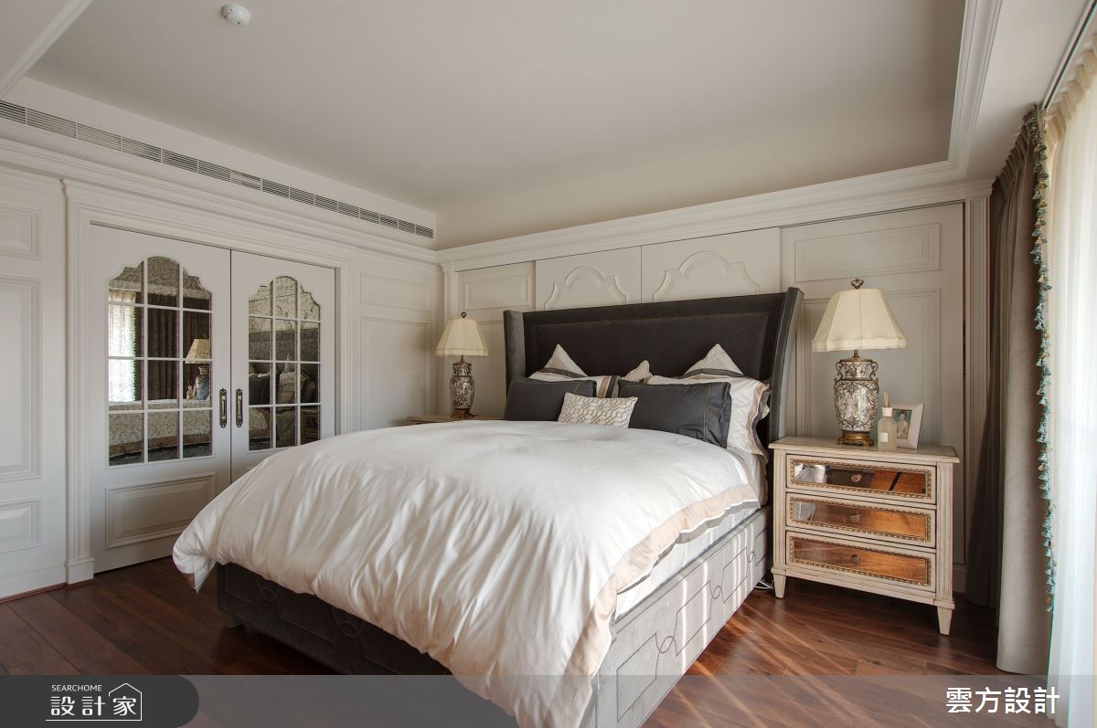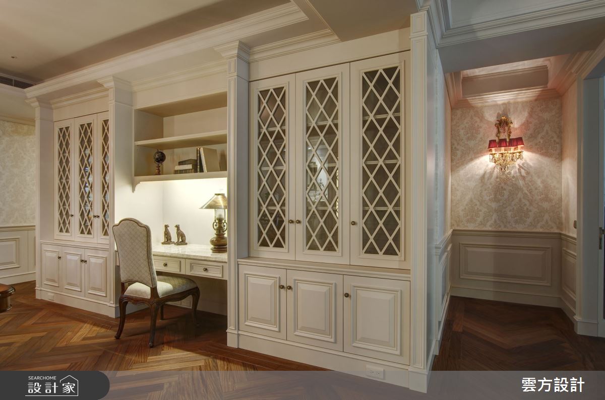 本案為雲方設計的70坪新古典毛胚屋設計作品,格局為單層三房的居住空間。居住成員包含2位大人、1位小孩。全室建材的搭配,應用乳膠漆、花磚、壁紙、超耐磨木地板、石英磚/拋光石英磚、鐵件、茶玻、木作貼皮、烤漆、壓克力、大理石、磁磚、木百葉、賽麗石、石材、線板、噴漆,展現溫馨的居家氛圍。