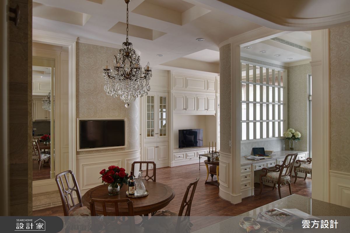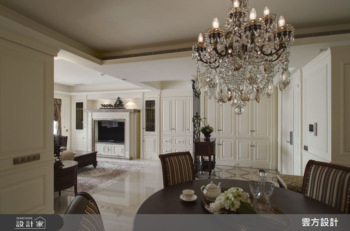 由雲方設計精心規劃的65坪三房住宅空間,家庭成員一共有2位大人、2位小孩。因應屋主需求,設計師運用新古典作為主軸,搭配油漆、花磚、壁紙、超耐磨木地板、石英磚/拋光石英磚、茶玻、木作貼皮、大理石、磁磚、賽麗石、石材、線板、噴漆,打造全家人的夢想家居。