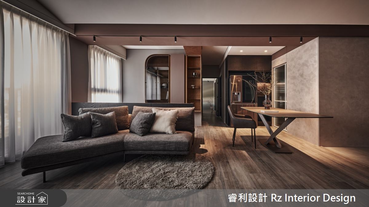 睿利設計以油漆、鐵道磚、超耐磨木地板、不鏽鋼、鐵件、灰鏡、鍍鈦金屬、木作貼皮、烤漆、系統板材、磁磚、軌道燈、石材、噴漆的搭配應用,呈現現代風居家氛圍,將此間33坪、三房、單層、新成屋(5年以下)打造成舒適愜意的家庭空間,完成2位大人全家人的夢想之居。