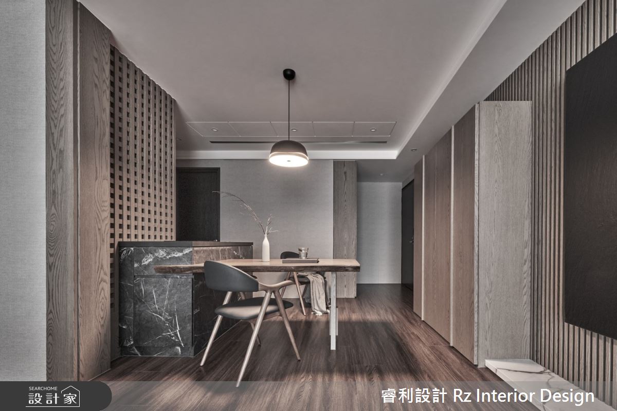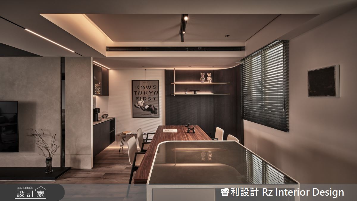 來自睿利設計的24坪侘寂風住宅案,屋主一家人共有2位大人,是一間單層新成屋(5年以下)的兩房格局,設計師藉由建材以油漆、壁紙、超耐磨木地板、鐵件、灰鏡、茶玻、鍍鈦金屬、木作貼皮、烤漆、系統板材、磁磚、水泥/水泥粉光、人造石、石材、噴漆的搭配應用,實現一家人的理想生活。