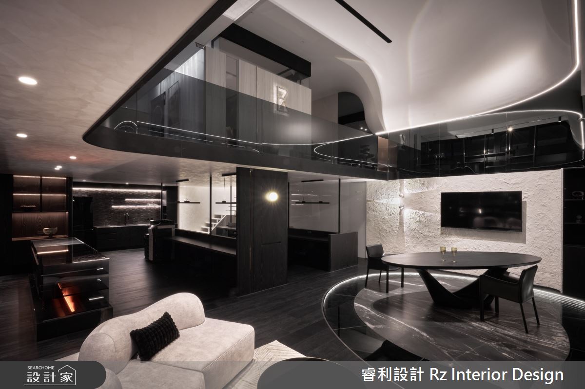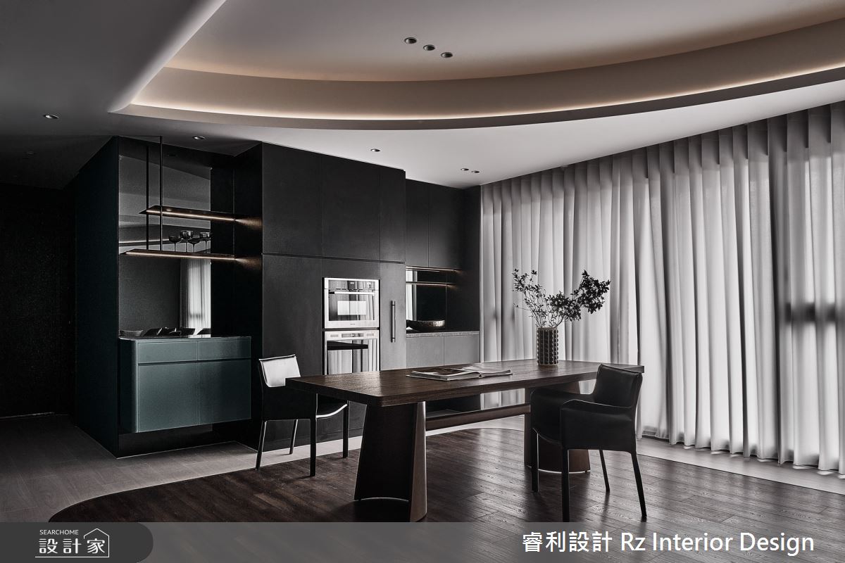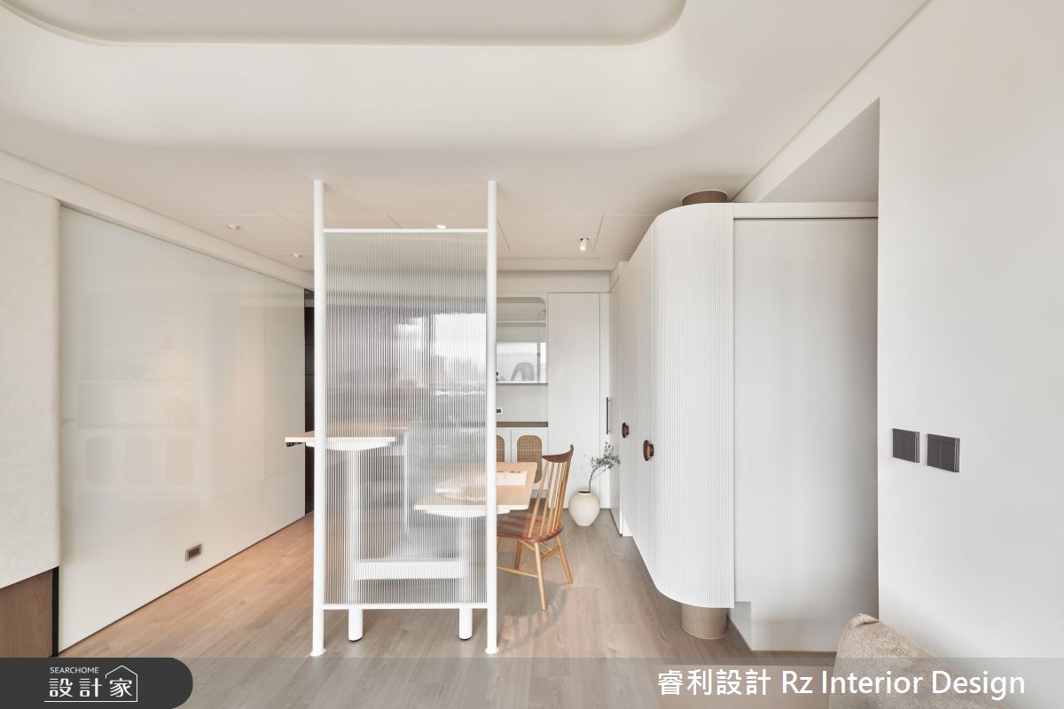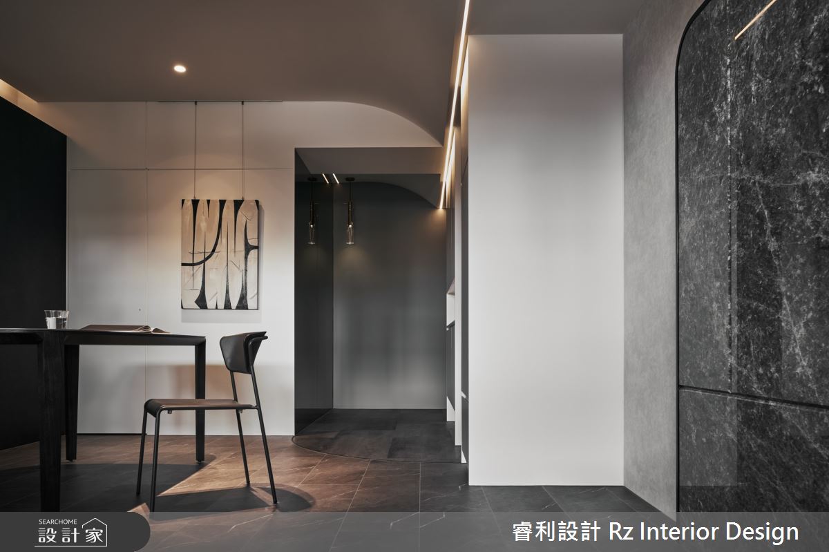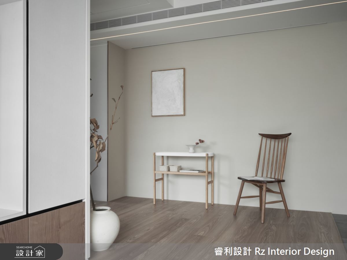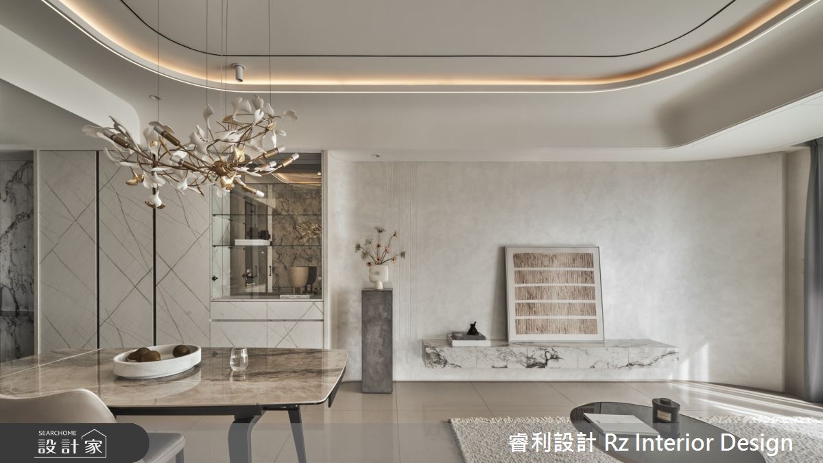睿利設計以油漆、鐵道磚、超耐磨木地板、不鏽鋼、鐵件、灰鏡、鍍鈦金屬、木作貼皮、烤漆、系統板材、磁磚、軌道燈、石材、噴漆的搭配應用,呈現現代風居家氛圍,將此間33坪、三房、單層、新成屋(5年以下)打造成舒適愜意的家庭空間,完成2位大人全家人的夢想之居。