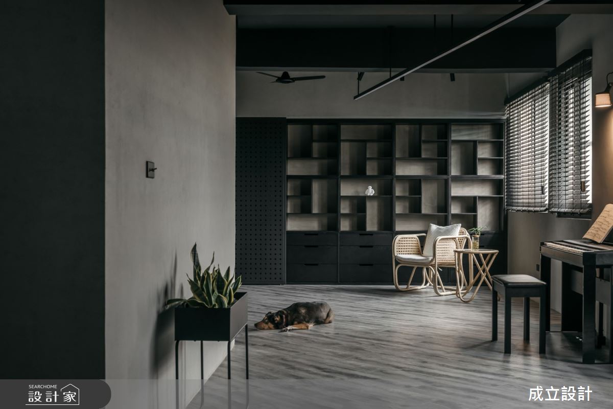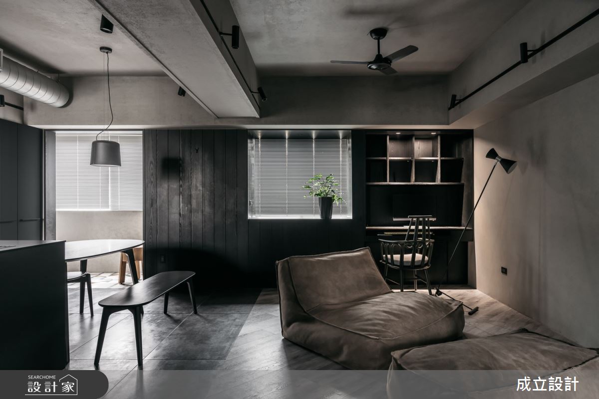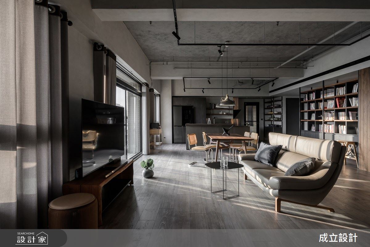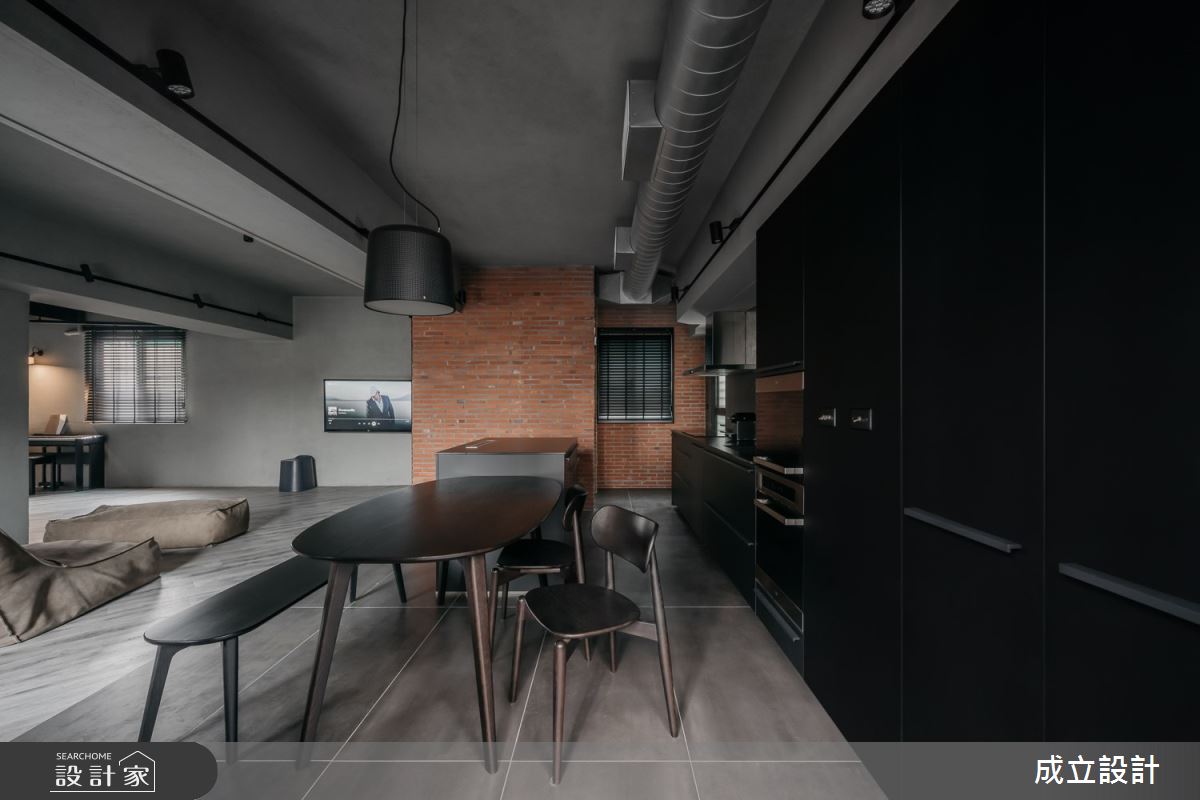 來自成立設計的47坪工業風住宅案,屋主一家人共有2位大人,是一間單層中古屋(5~15年)的兩房格局,設計師藉由建材以油漆、水泥漆、超耐磨木地板、不鏽鋼、鐵件、木作貼皮、鋼刷木皮、磁磚、樂土、賽麗石、軌道燈、石材、噴漆的搭配應用,實現一家人的理想生活。