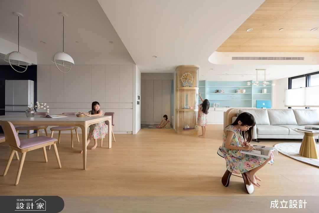 本案為成立設計的52坪北歐風新成屋(5年以下)設計作品,格局為單層三房的居住空間。居住成員包含2位大人、1位小孩。全室建材的搭配,應用油漆、六角磚/蜂巢磚、花磚、海島型木地板、木地板、鐵件、木作貼皮、烤漆、磁磚、軌道燈、噴漆、噴砂玻璃,展現溫馨的居家氛圍。