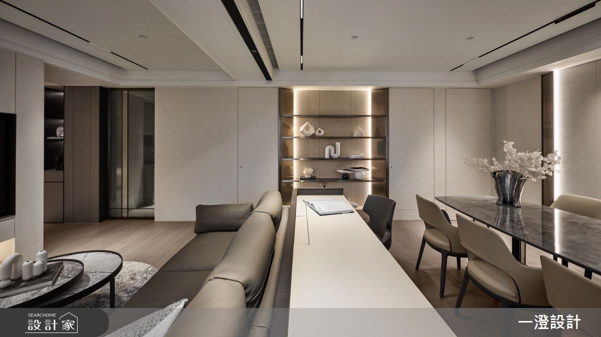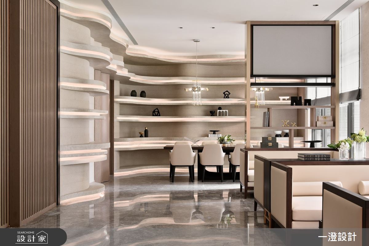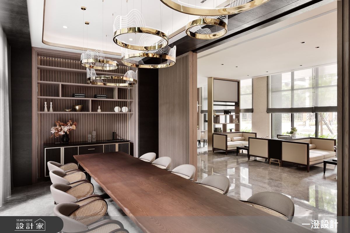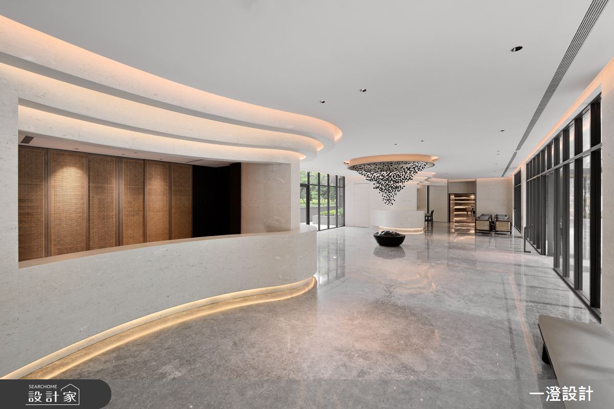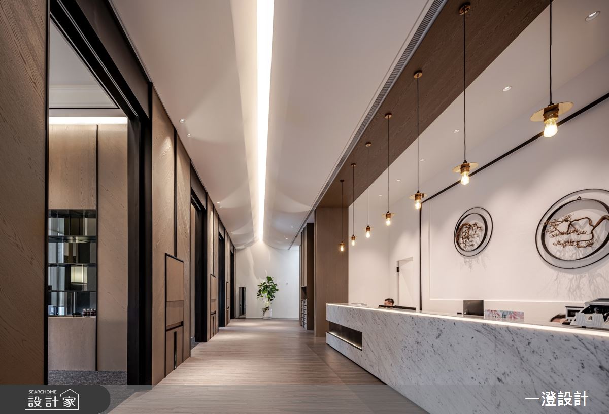 由一澄設計事業精心規劃的156坪公共空間,因應業主需求,設計師運用現代輕奢風作為主軸,搭配建材天然石材、特殊漆、金屬烤漆、玻璃隔間、木質地板,打造精緻品味的空間氛圍。