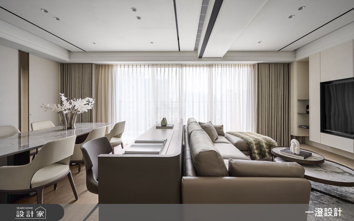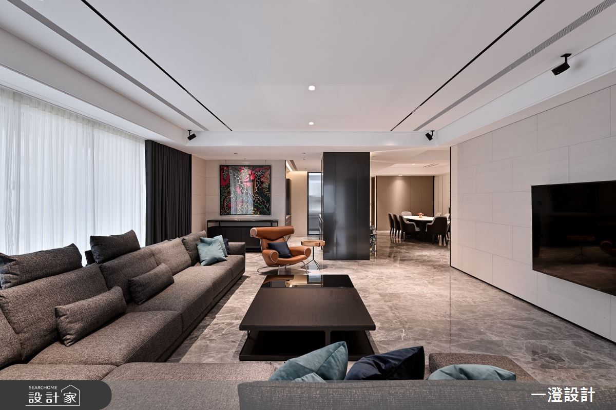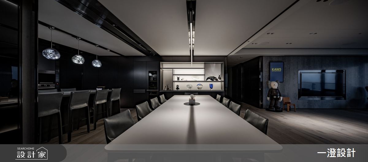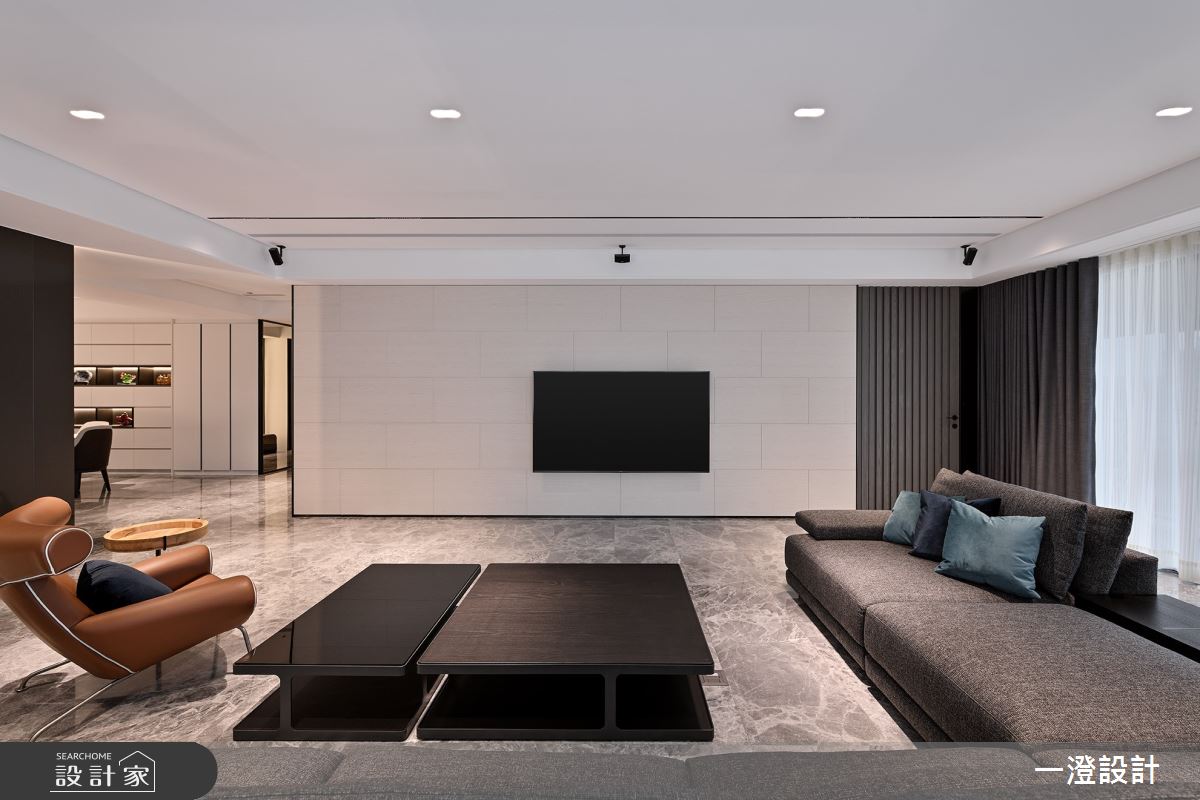 一澄設計事業以天然大理石、實木地板、鍍鈦金屬、金屬烤漆、進口壁布、皮革、光膜的搭配應用,呈現現代簡約風居家氛圍,將此間188坪、四房打造成舒適愜意的家庭空間,完成全家人的夢想之居。