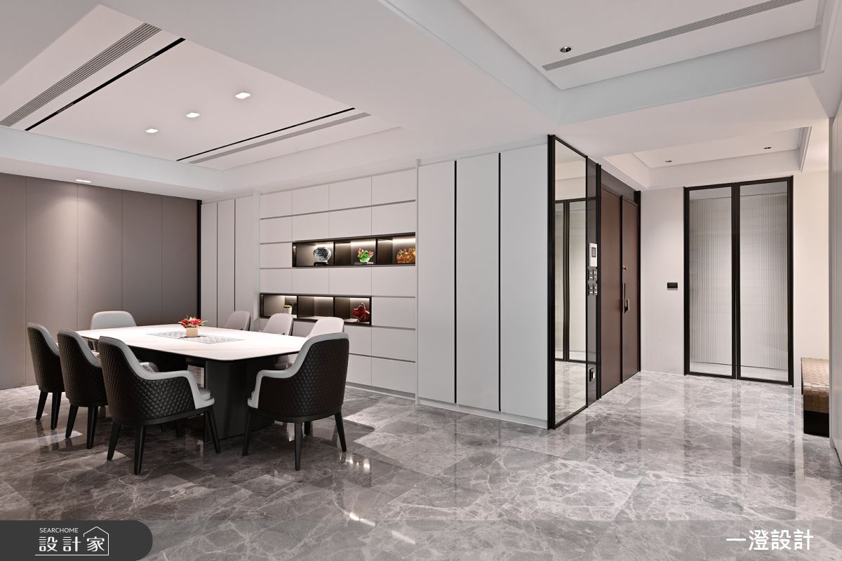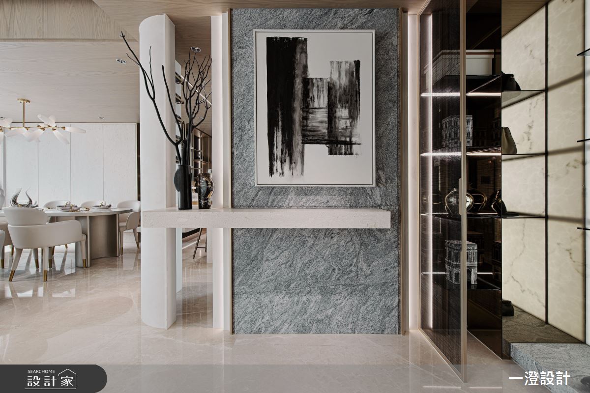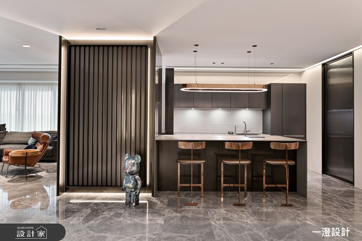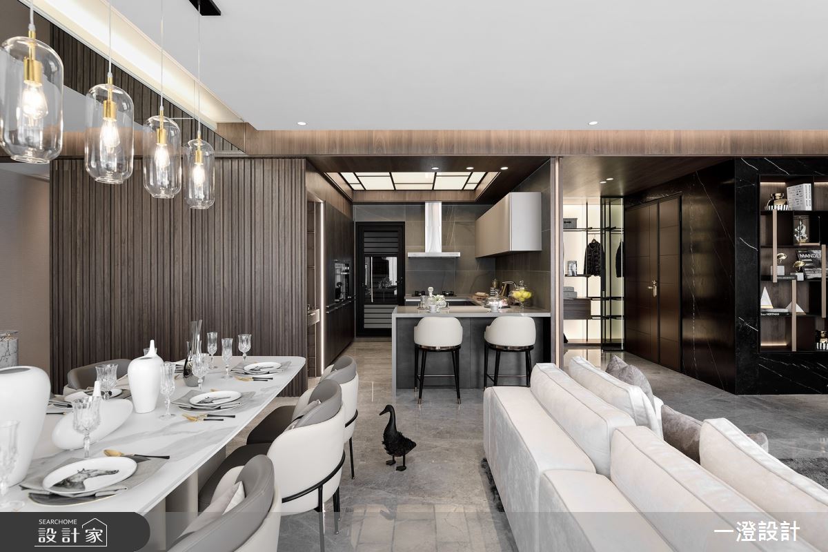 一澄設計事業以天然大理石、實木地板、鍍鈦金屬、金屬烤漆、進口壁布、皮革、光膜的搭配應用,呈現現代簡約風居家氛圍,將此間188坪、四房打造成舒適愜意的家庭空間,完成全家人的夢想之居。