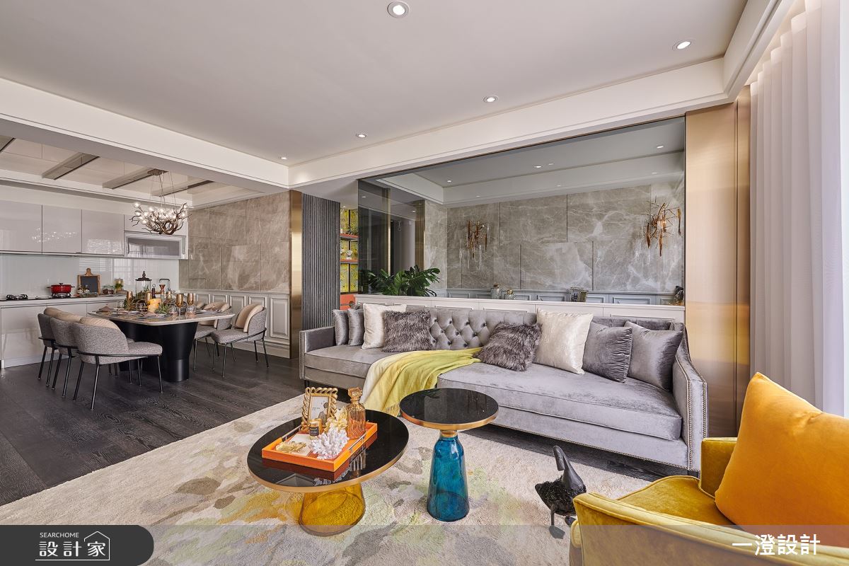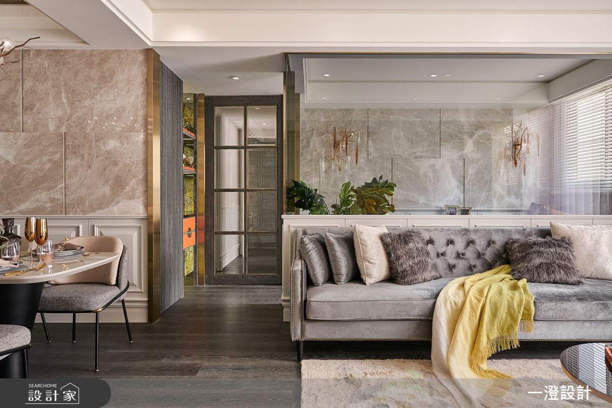 本案為一澄設計事業的54坪古典輕奢風設計作品,格局為四房的居住空間。全室建材的搭配,應用天然大理石、壁紙、繃布、仿古鏡,展現溫馨的居家氛圍。
