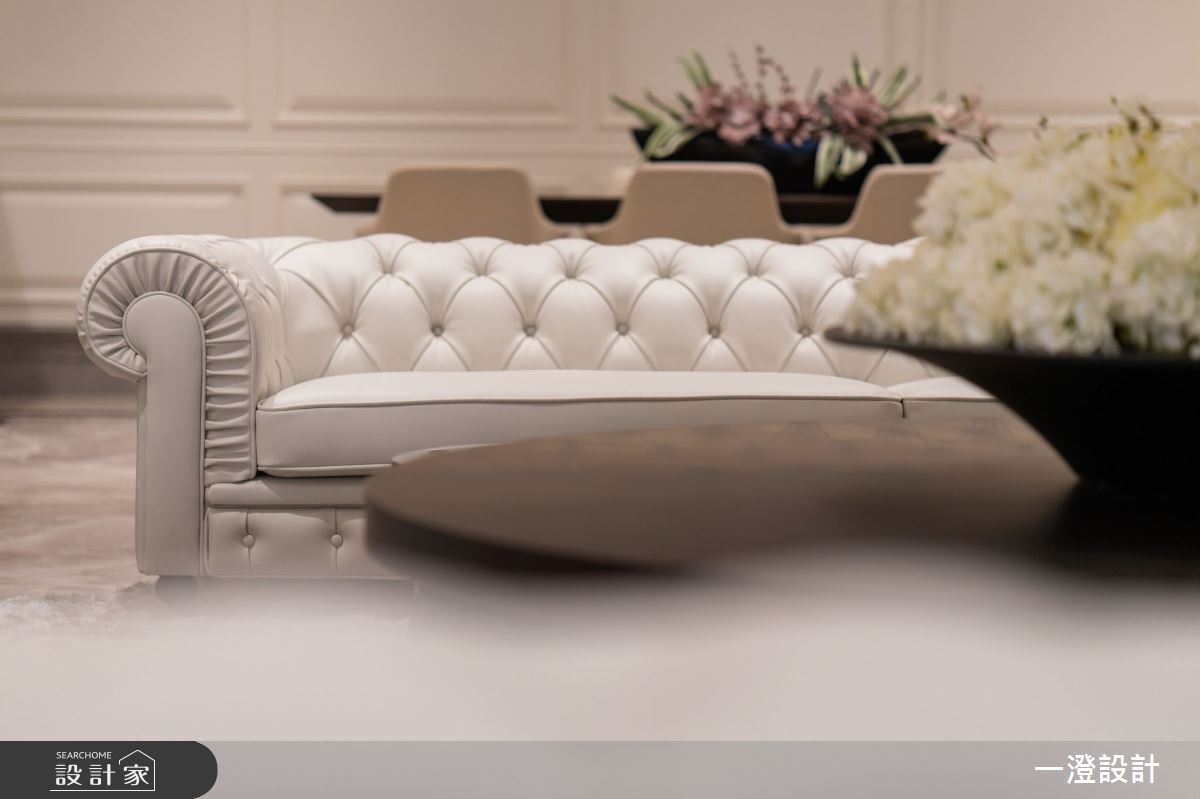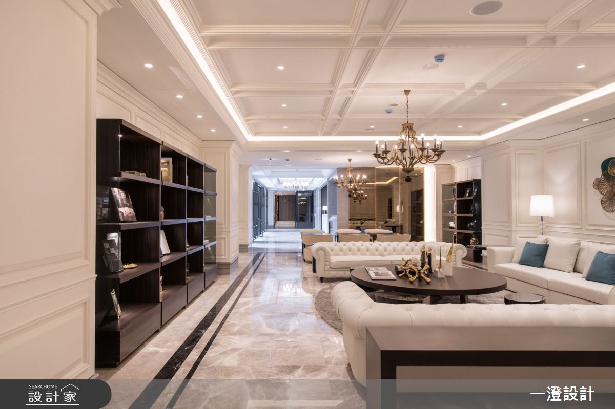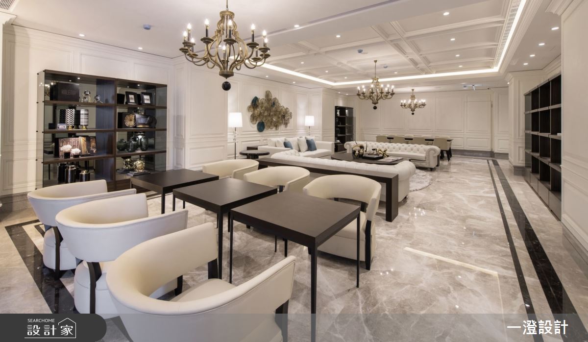 由一澄設計事業精心規劃的108坪公共空間,因應業主需求,設計師運用法式古典風作為主軸,搭配建材天然石材、實木皮染色、線板烤漆、天然皮革,打造精緻品味的空間氛圍。