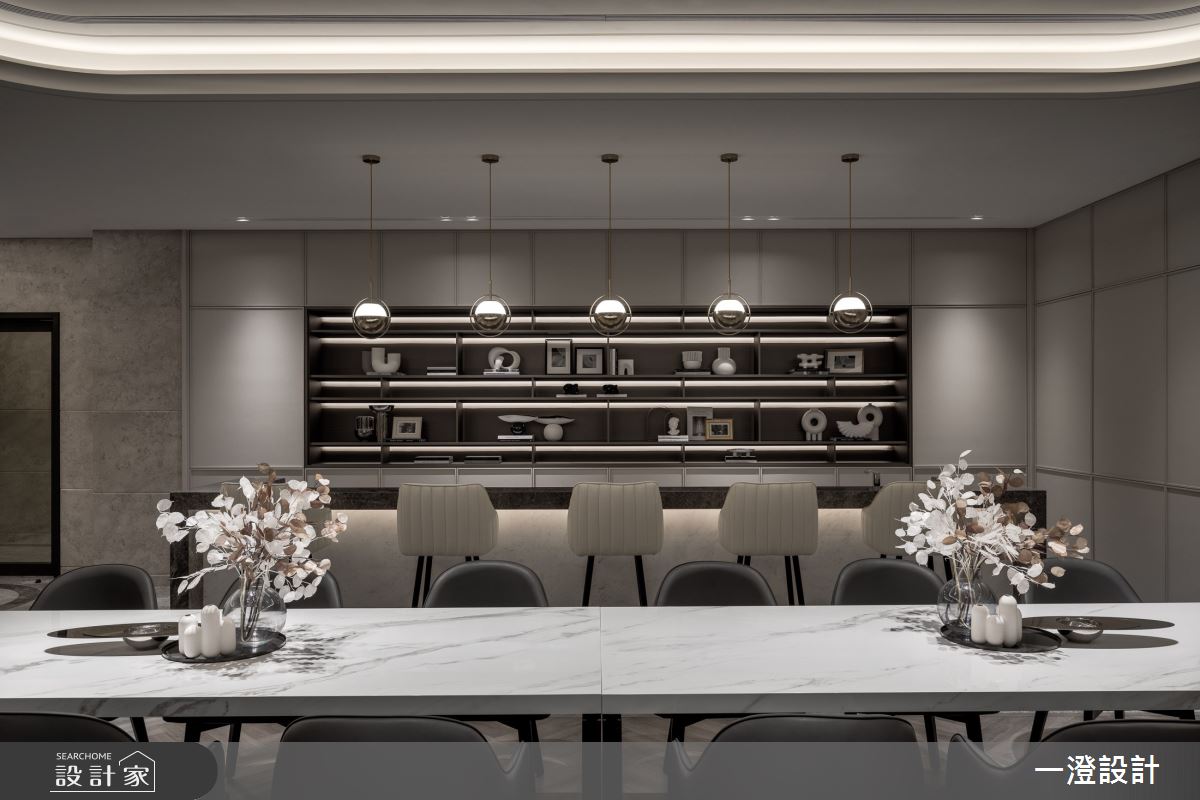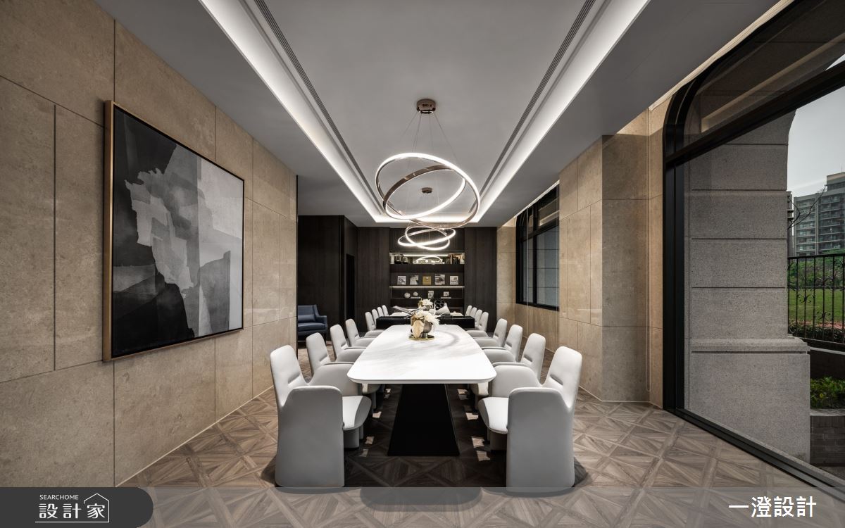 由一澄設計事業精心規劃的156坪公共空間,因應業主需求,設計師運用現代輕奢風作為主軸,搭配建材天然石材、特殊漆、金屬烤漆、玻璃隔間、木質地板,打造精緻品味的空間氛圍。