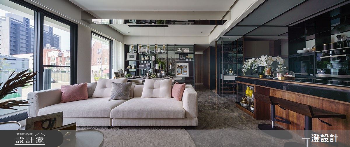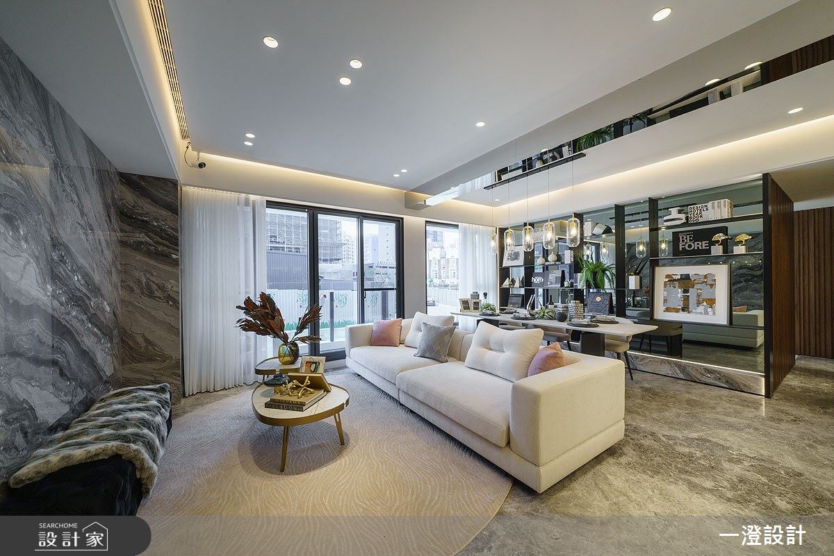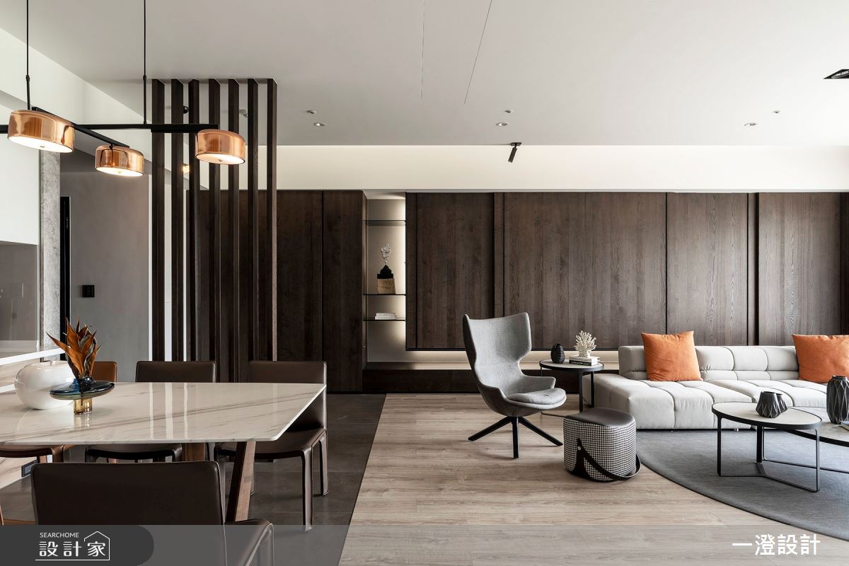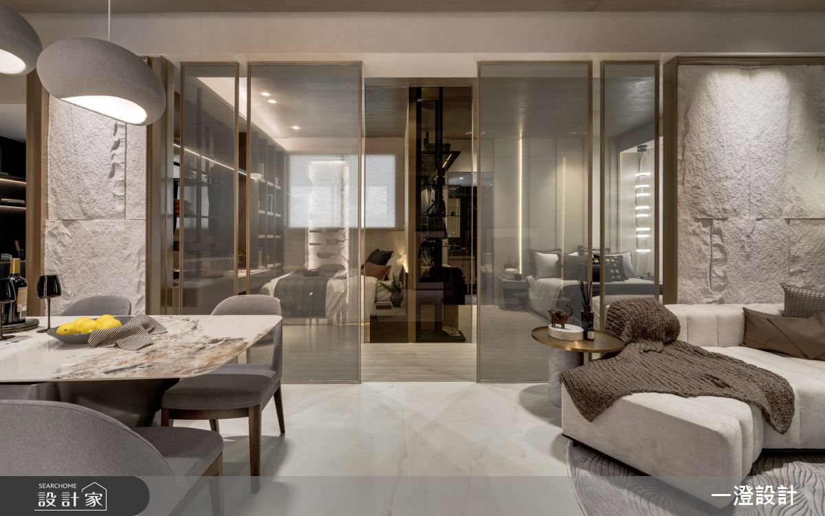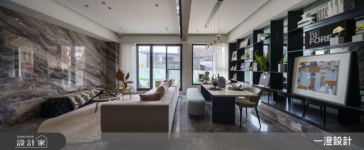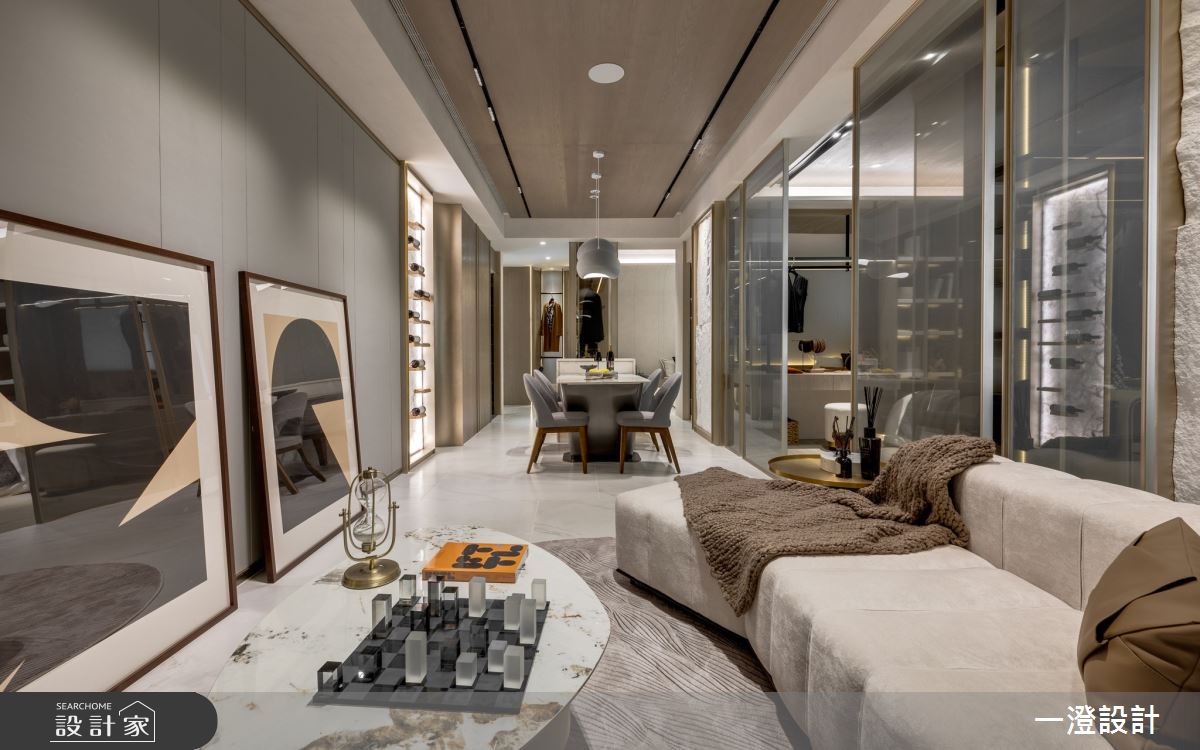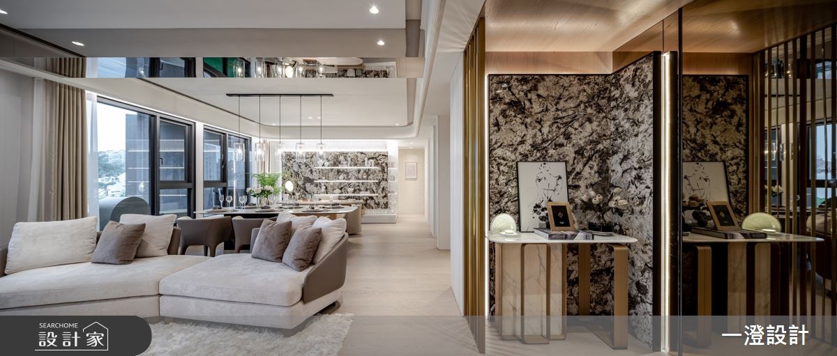 由一澄設計事業精心規劃的50坪四房住宅空間。因應屋主需求,設計師運用輕奢華風作為主軸,搭配天然石材、海島型木地板、天然木皮染色、鍍鈦折板、皮革、透光雲石,打造全家人的夢想家居。