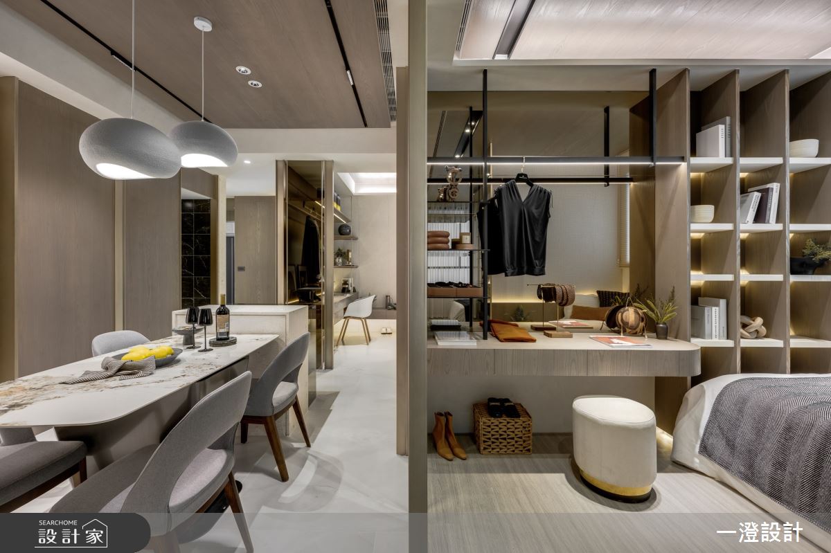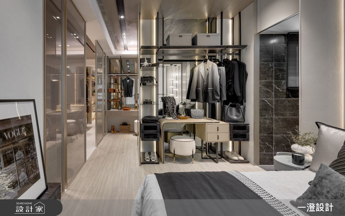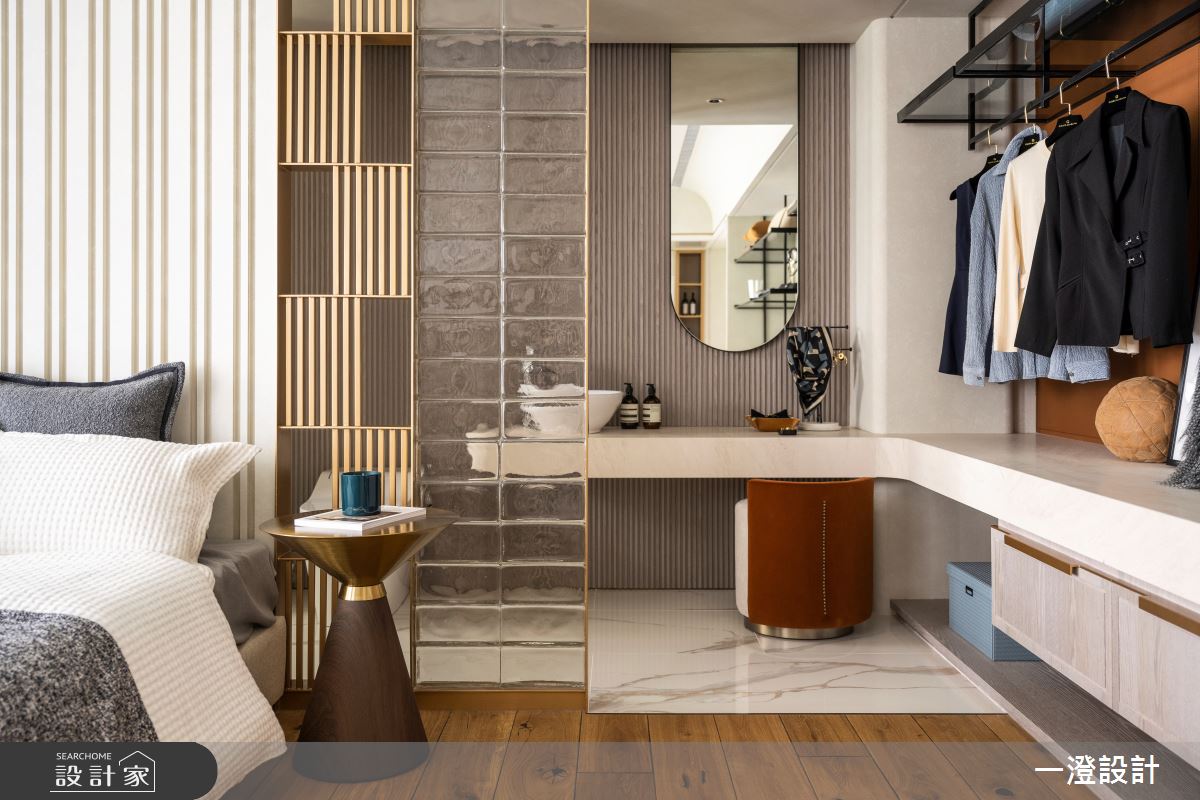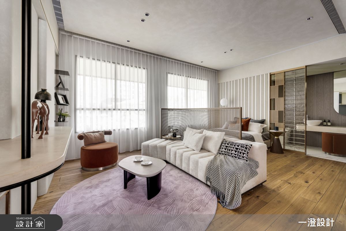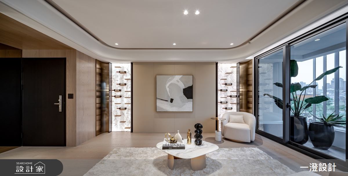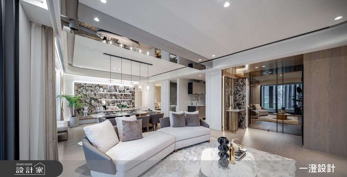 由一澄設計事業精心規劃的50坪四房住宅空間。因應屋主需求,設計師運用輕奢華風作為主軸,搭配天然石材、海島型木地板、天然木皮染色、鍍鈦折板、皮革、透光雲石,打造全家人的夢想家居。