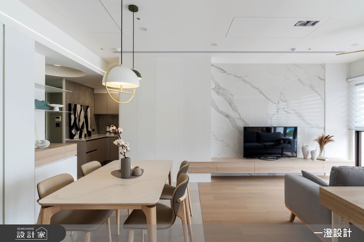 來自一澄設計事業的35坪現代簡約風住宅案,是一間四房格局,設計師藉由建材以天然石材、天然木皮染色、特殊塗料、金屬烤漆、造型石皮的搭配應用,實現一家人的理想生活。
