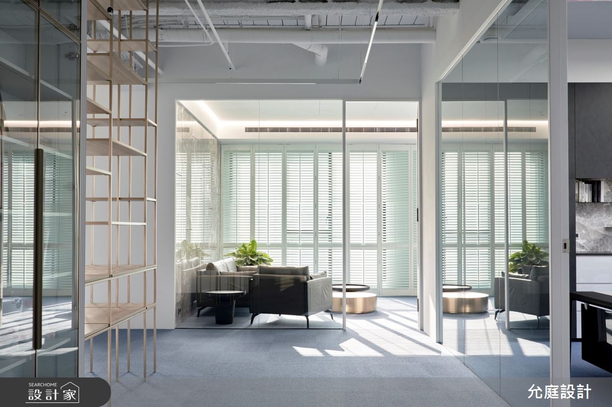 允庭室內裝修設計有限公司以油漆、乳膠漆、水泥漆、磁性漆/磁性黑板漆、epoxy地板、鐵件、烤漆、系統板材、大理石、水泥/水泥粉光、木百葉、人造石、軌道燈、珪藻土、石材、線板、噴漆的搭配應用,呈現新中式風的風格氣息,將此間132.5坪毛胚屋優雅詮釋成舒適愜意的商業空間。
