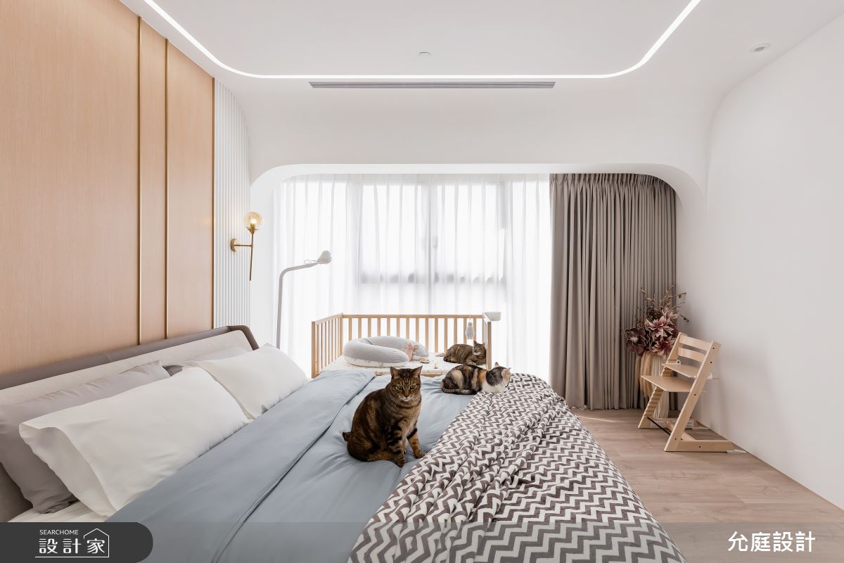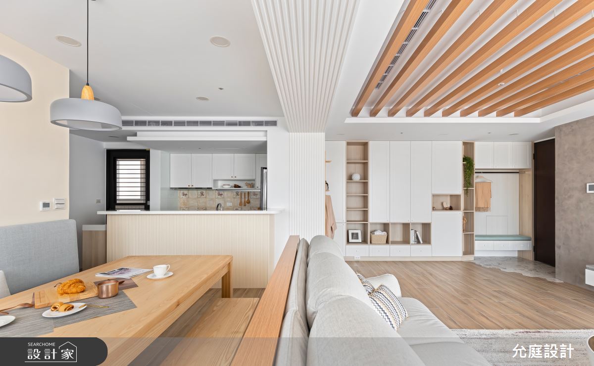 來自允庭室內裝修設計有限公司的35坪北歐風住宅案,是一間單層新成屋(5年以下)的兩房格局,設計師藉由建材以油漆、乳膠漆、花磚、水泥漆、超耐磨木地板、不鏽鋼、鐵件、茶玻、烤玻、木作貼皮、烤漆、系統板材、大理石、磁磚、水泥/水泥粉光、人造石、線板、噴漆的搭配應用,實現一家人的理想生活。