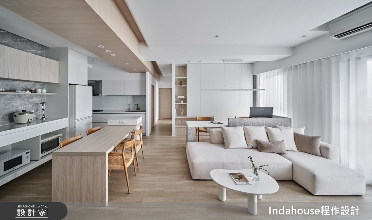 本案為Indahouse程作設計的28坪日式無印風中古屋(5~15年)設計作品,格局為單層三房的居住空間。居住成員包含2位大人。全室建材的搭配,應用超耐磨木地板、木作貼皮、系統板材、人造石、藝術塗料、鏡面,展現溫馨的居家氛圍。