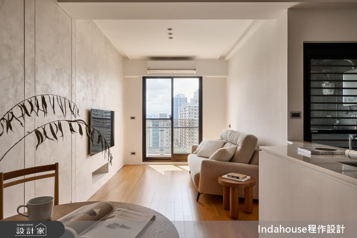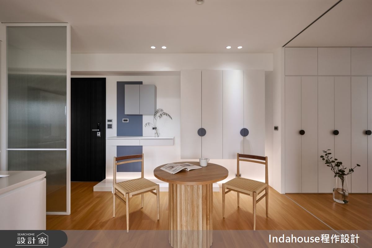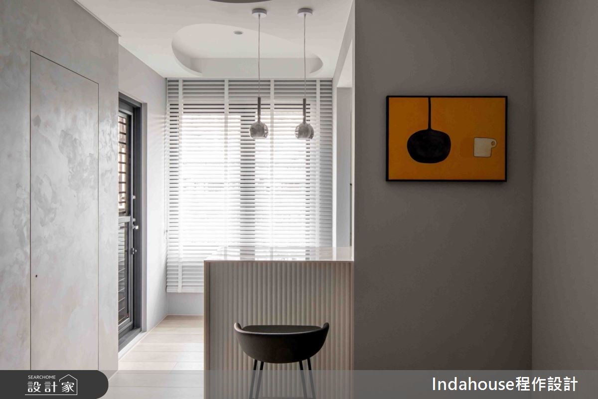 由Indahouse程作設計精心規劃的13.5坪兩房住宅空間,家庭成員一共有1位大人。因應屋主需求,設計師運用簡約風作為主軸,搭配超耐磨木地板、人造石、藝術塗料、半圓格柵飾板,打造全家人的夢想家居。