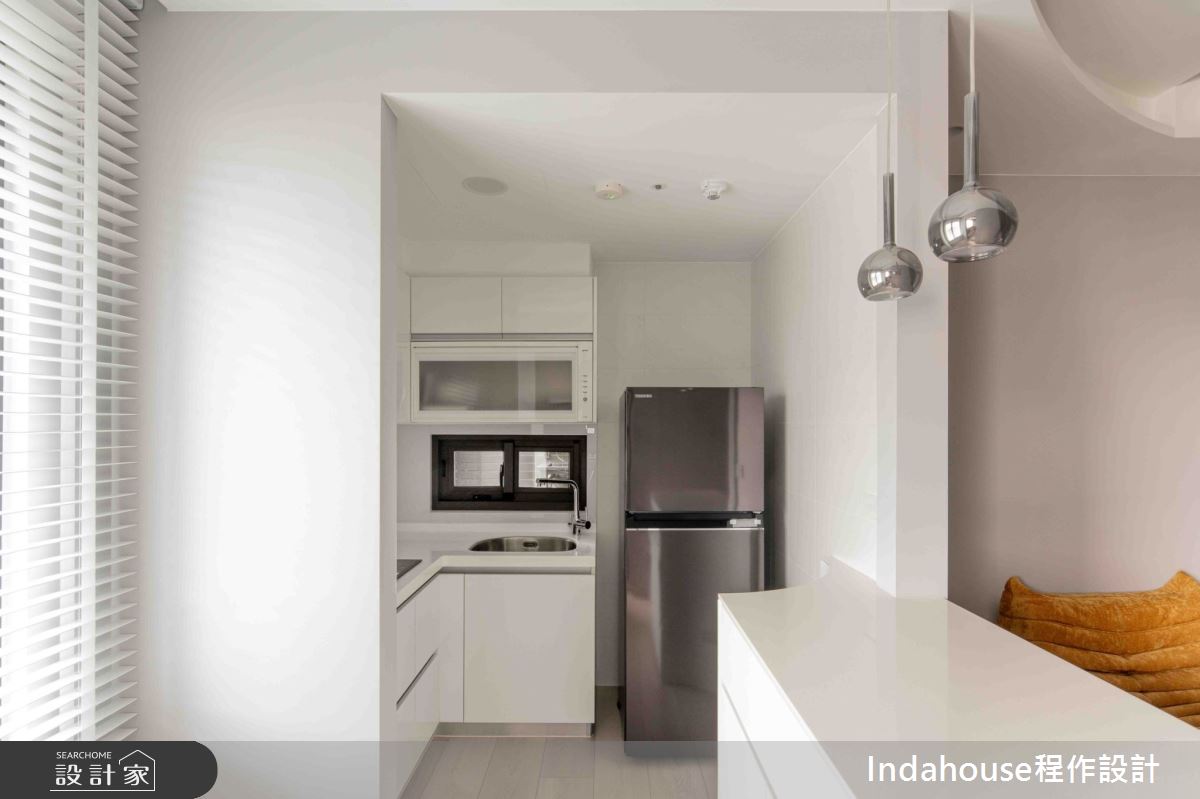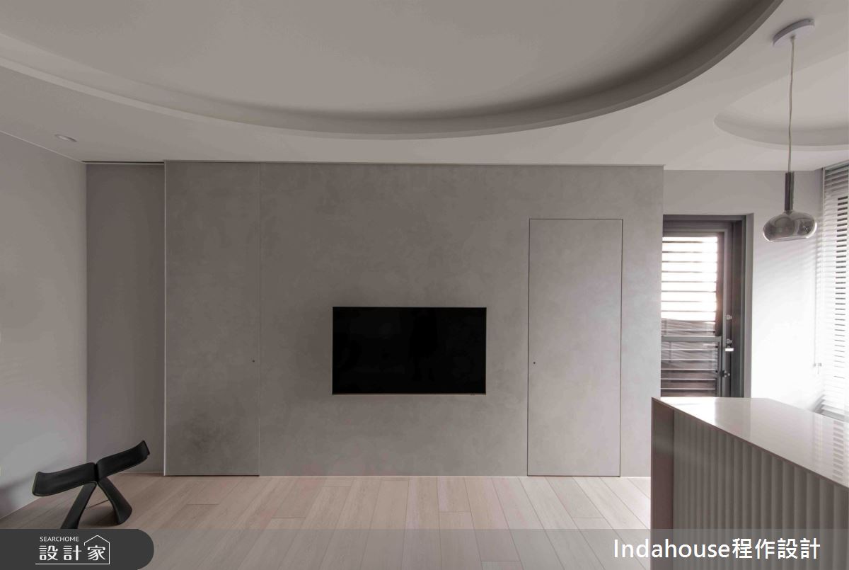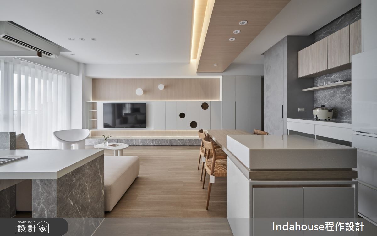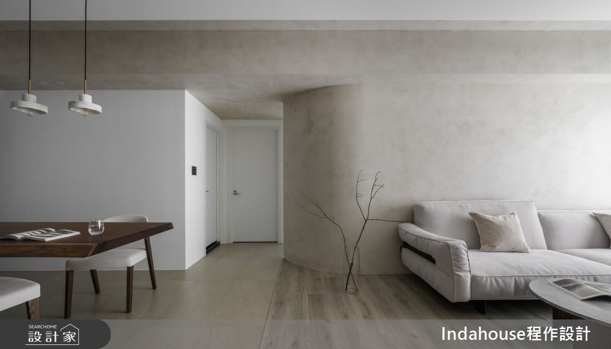 由Indahouse程作設計精心規劃的13.5坪兩房住宅空間,家庭成員一共有1位大人。因應屋主需求,設計師運用簡約風作為主軸,搭配超耐磨木地板、人造石、藝術塗料、半圓格柵飾板,打造全家人的夢想家居。