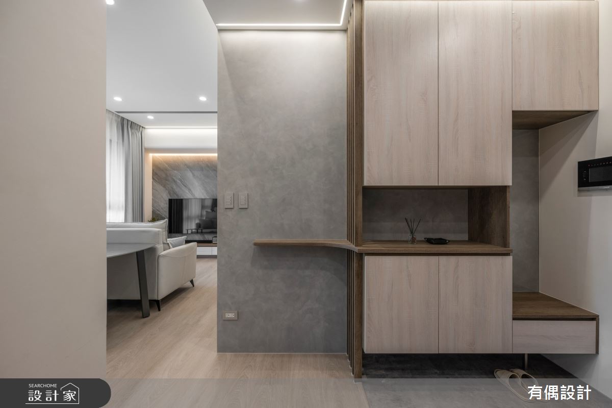 來自有偶設計的30坪現代簡約風住宅案,屋主一家人共有4位大人,是一間單層老屋(41~50年)的三房格局,設計師藉由建材以乳膠漆、超耐磨木地板、灰鏡、系統板材、磁磚、人造石、賽麗石的搭配應用,實現一家人的理想生活。