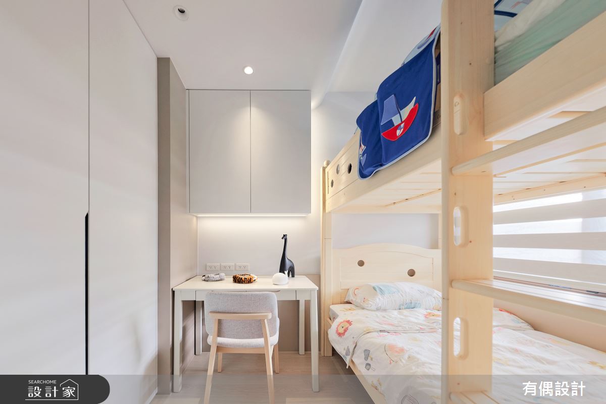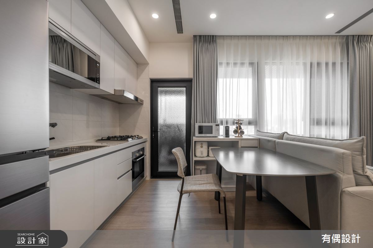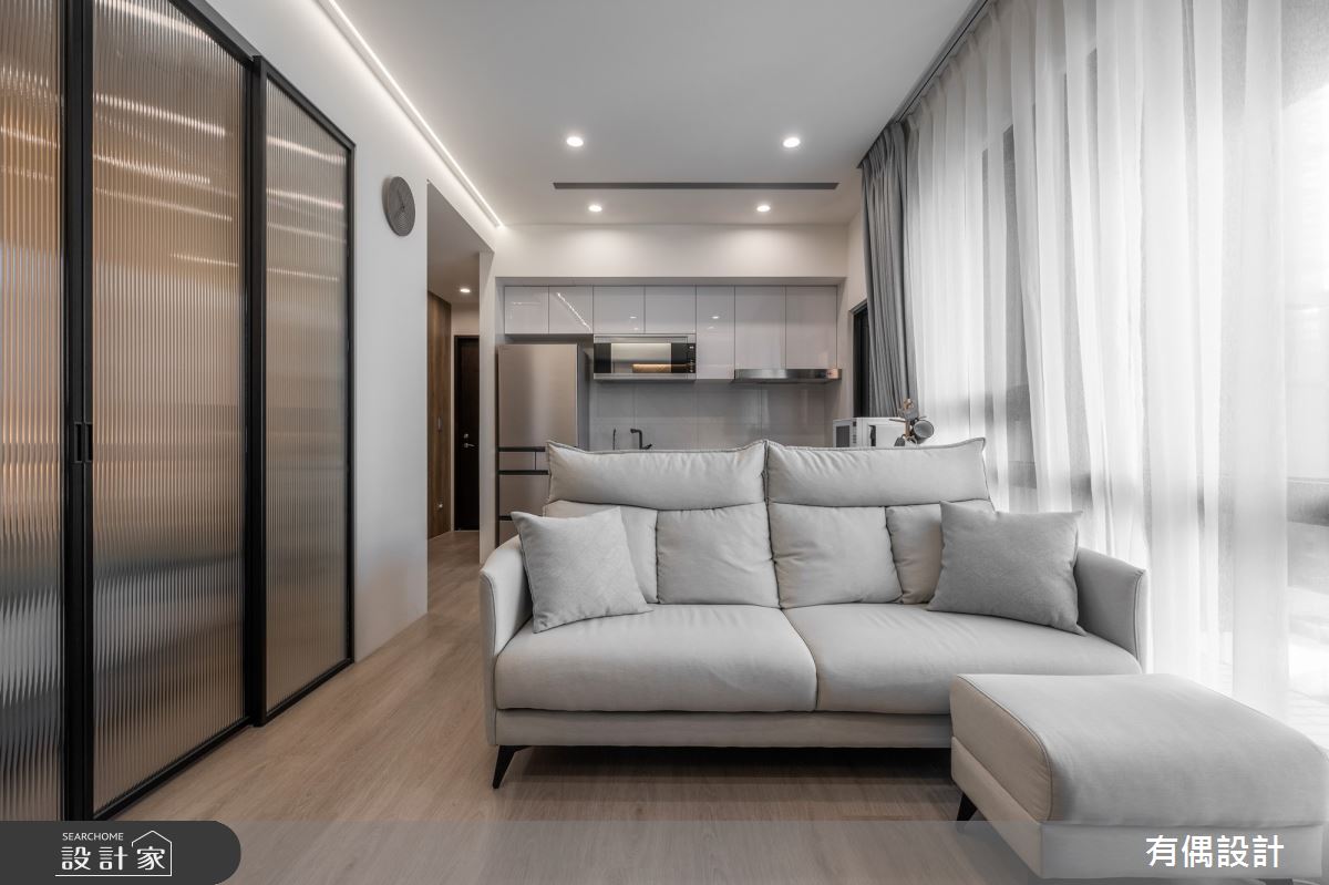 由有偶設計精心規劃的20坪三房住宅空間,家庭成員一共有2位大人、2位小孩。因應屋主需求,設計師運用現代簡約微北歐風作為主軸,搭配乳膠漆、超耐磨木地板、鐵件、烤玻、烤漆、系統板材、磁磚,打造全家人的夢想家居。
