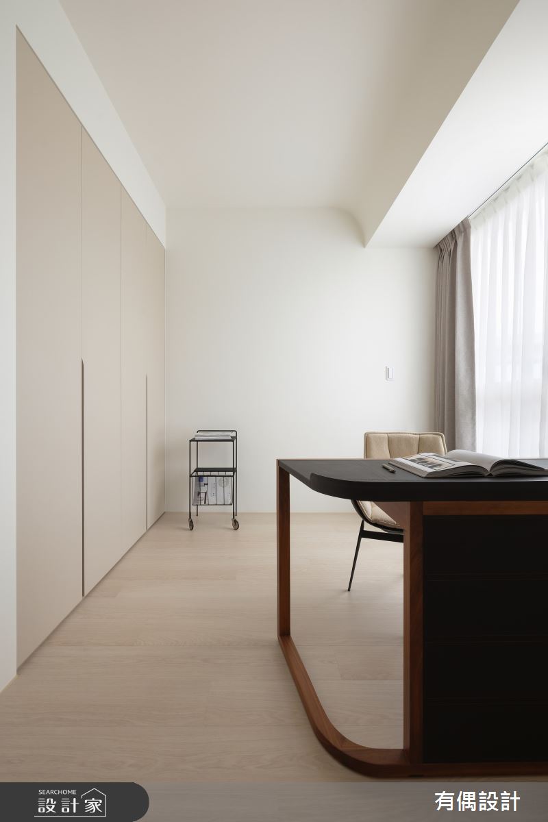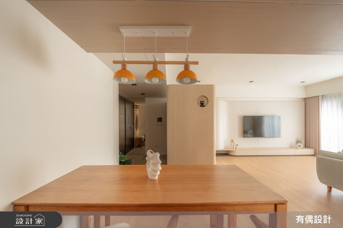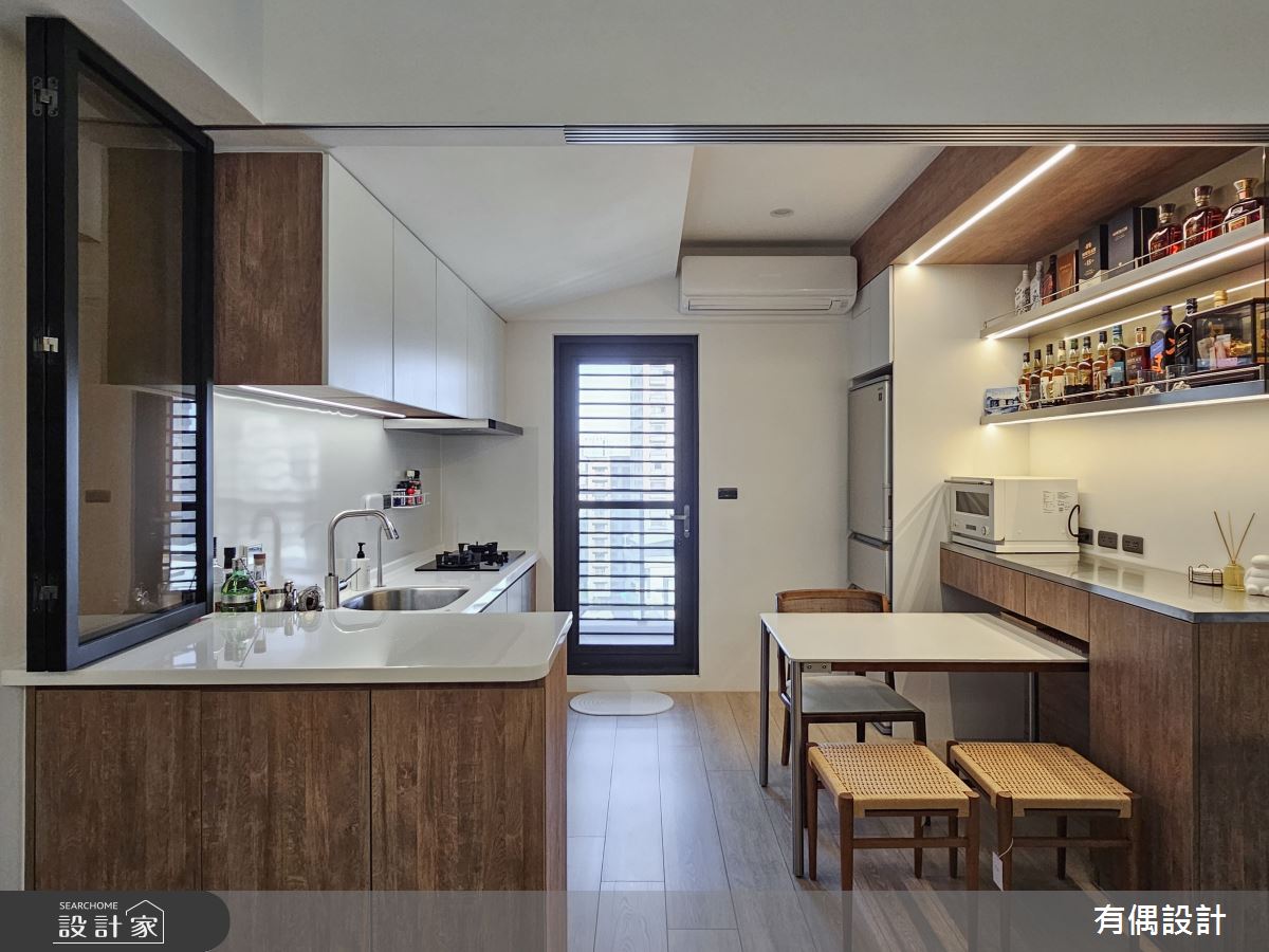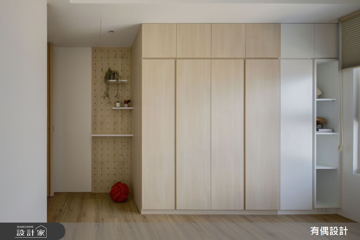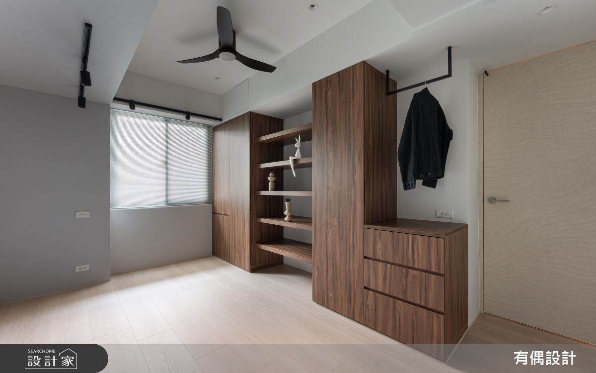 有偶設計以鐵件、木作貼皮、系統板材的搭配應用,呈現日式簡約風居家氛圍,將此間23坪、三房、單層、新成屋(5年以下)打造成舒適愜意的家庭空間,完成1位大人的夢想之居。