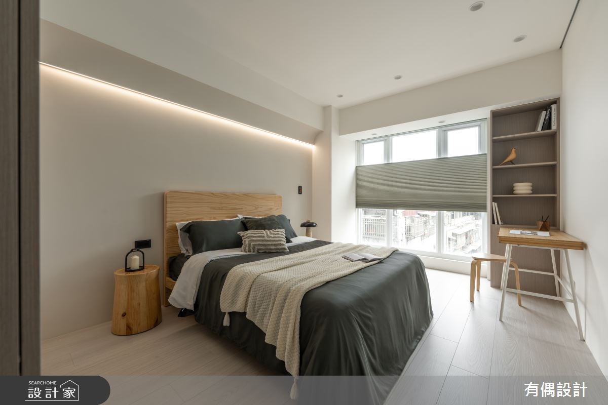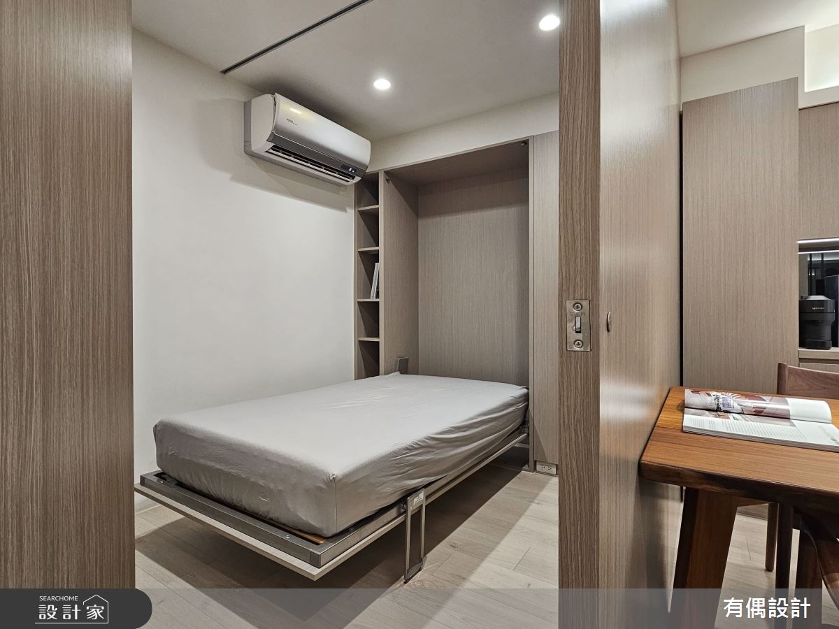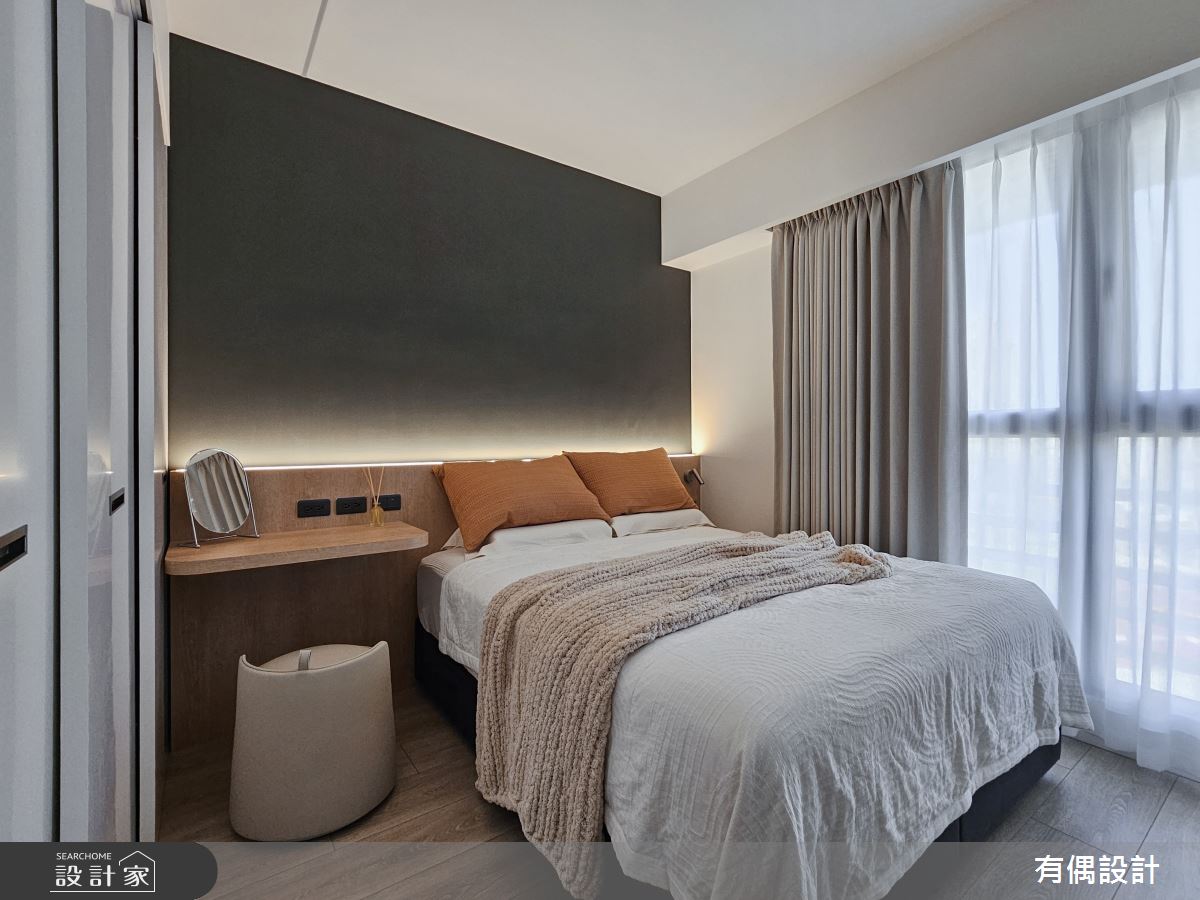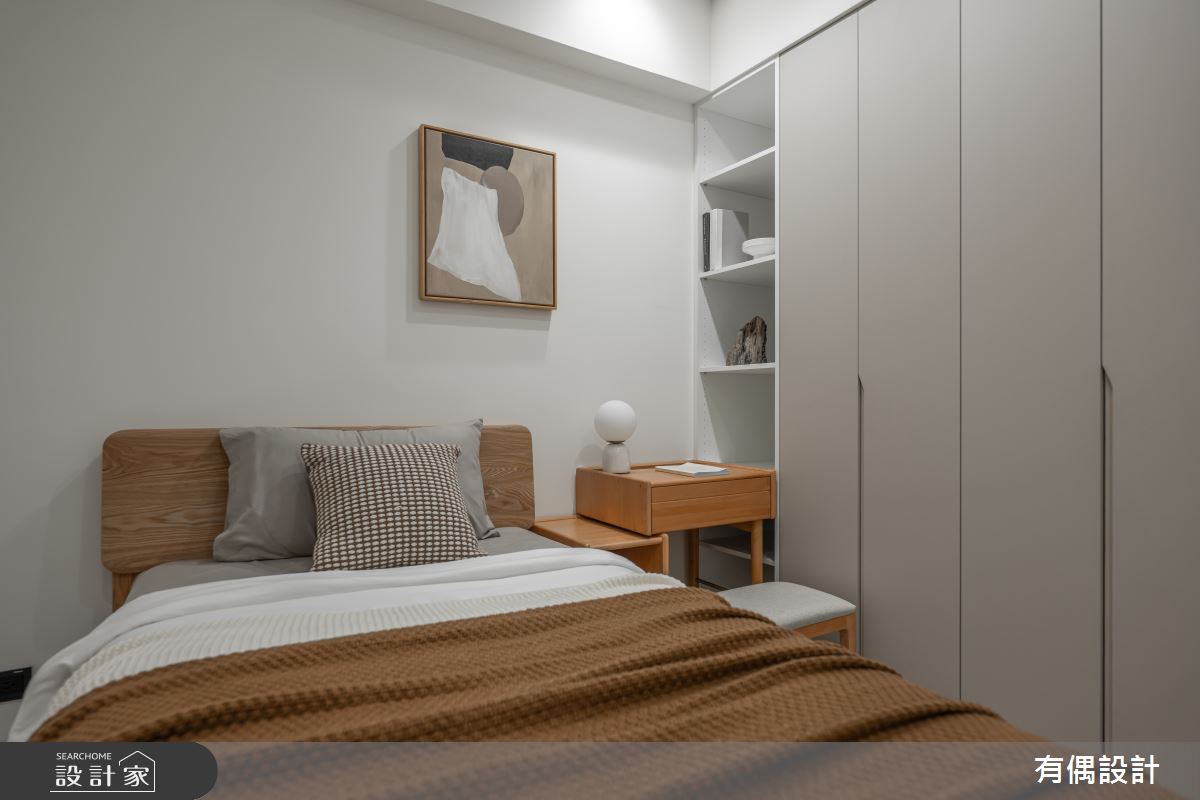 有偶設計以鐵件、木作貼皮、系統板材的搭配應用,呈現日式簡約風居家氛圍,將此間23坪、三房、單層、新成屋(5年以下)打造成舒適愜意的家庭空間,完成1位大人的夢想之居。