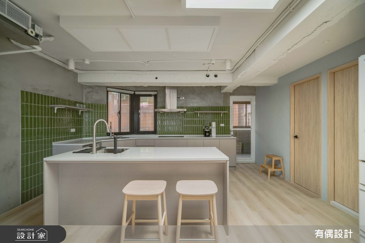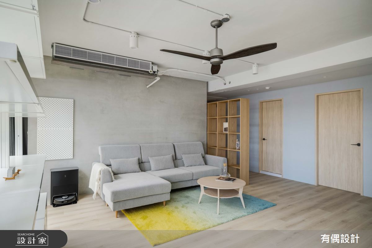 來自有偶設計的20坪混搭風住宅案,屋主一家人共有2位大人、2位小孩,是一間單層新古屋(10年以下)的三房格局,設計師藉由建材以乳膠漆、超耐磨木地板、PVC地板、鐵件、系統板材的搭配應用,實現一家人的理想生活。