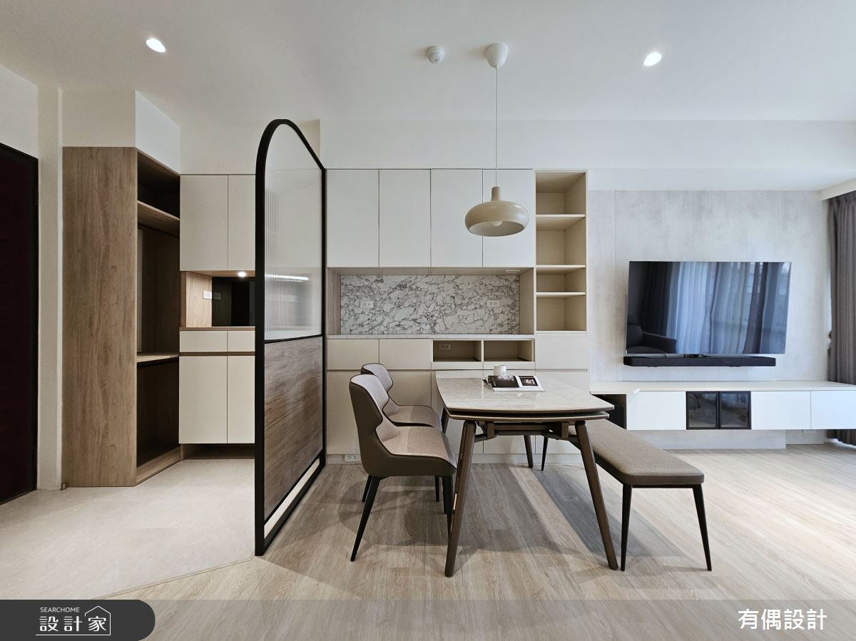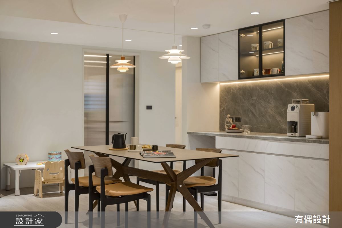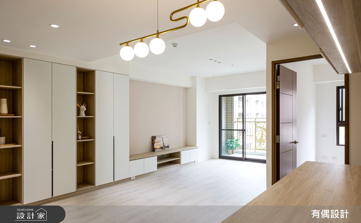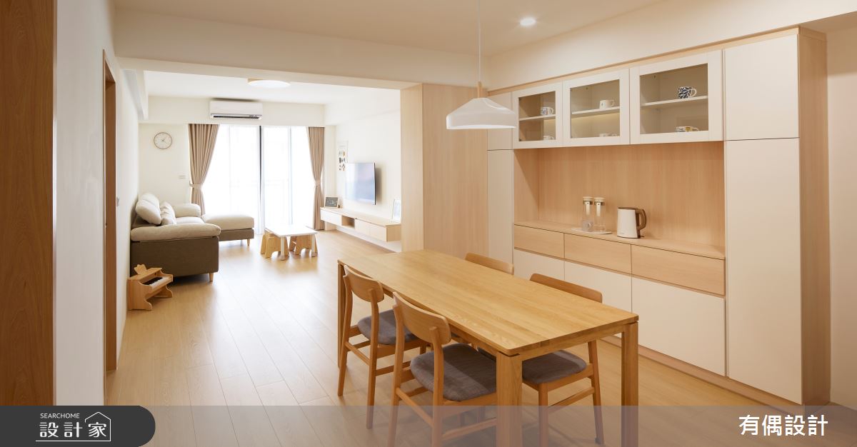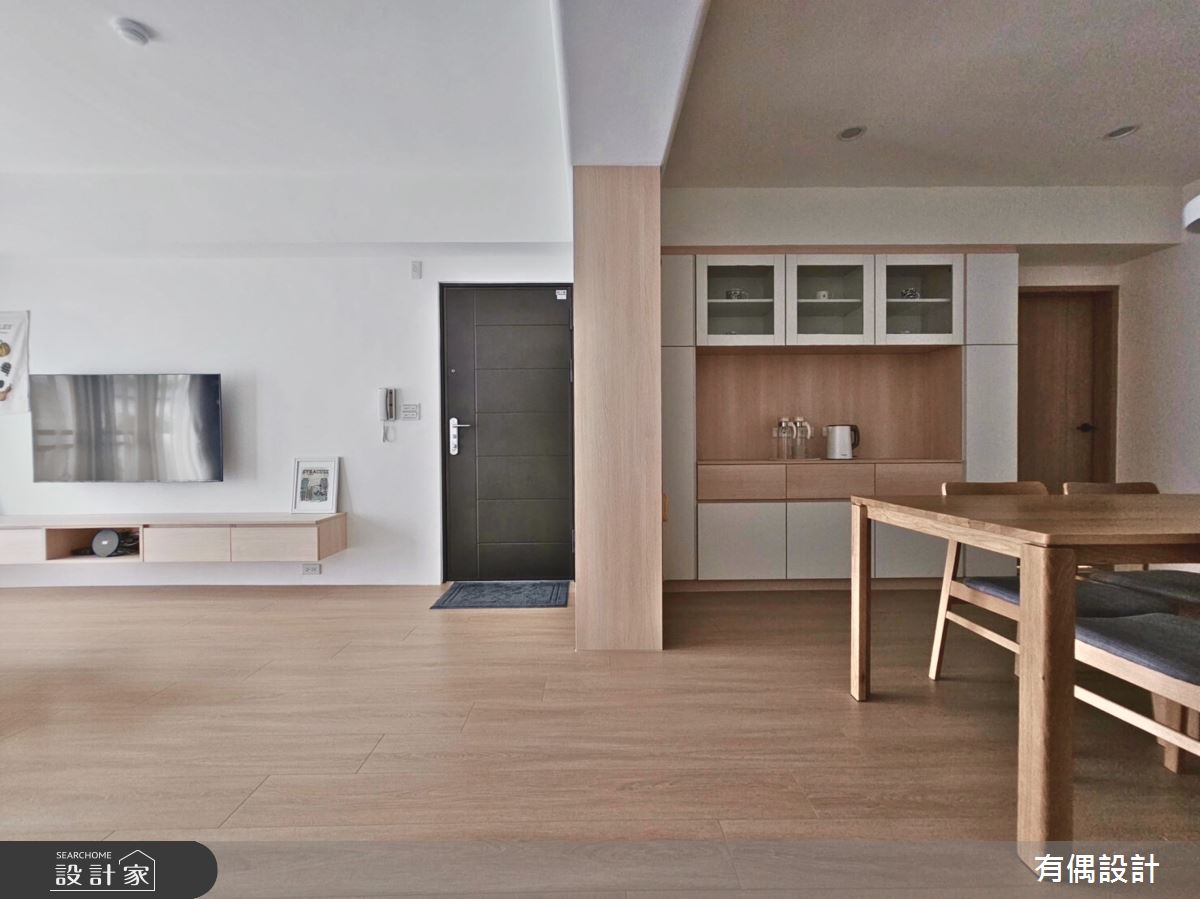 來自有偶設計的31坪現代風住宅案,是一間單層新成屋(5年以下)的四房格局,設計師藉由建材以超耐磨木地板的搭配應用,實現一家人的理想生活。