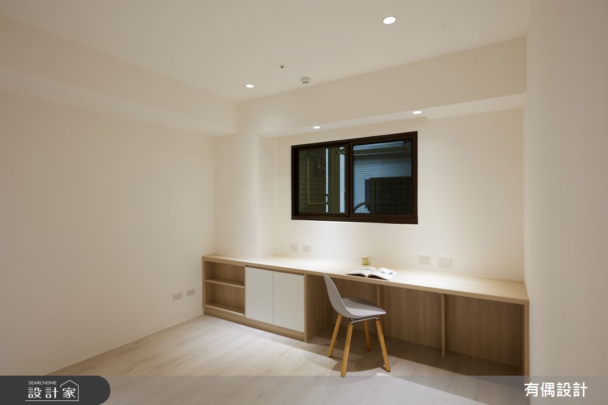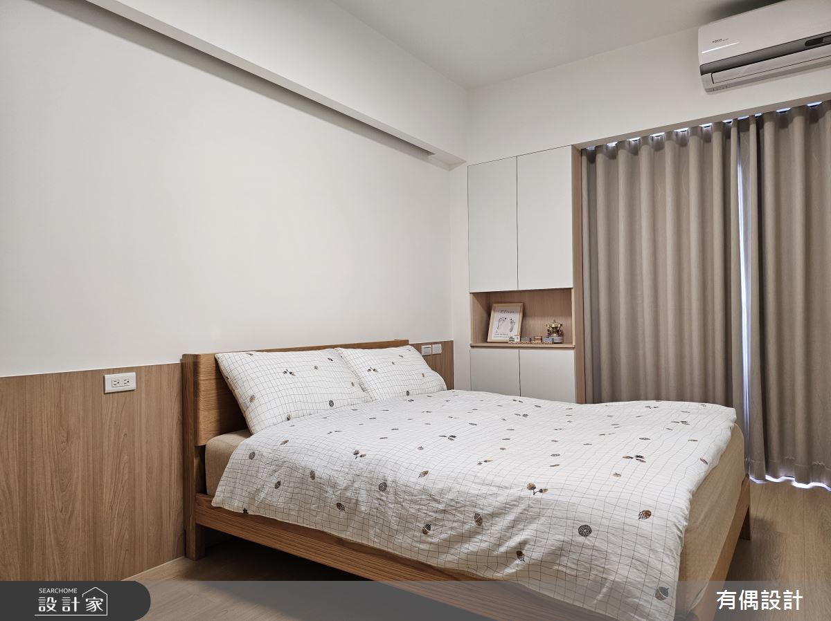 本案為有偶設計的34坪日式無印風老屋(41~50年)設計作品,格局為單層四房的居住空間。居住成員包含2位大人、1位小孩。全室建材的搭配,應用水泥漆、超耐磨木地板、木作貼皮、系統板材,展現溫馨的居家氛圍。