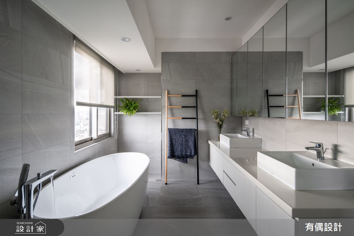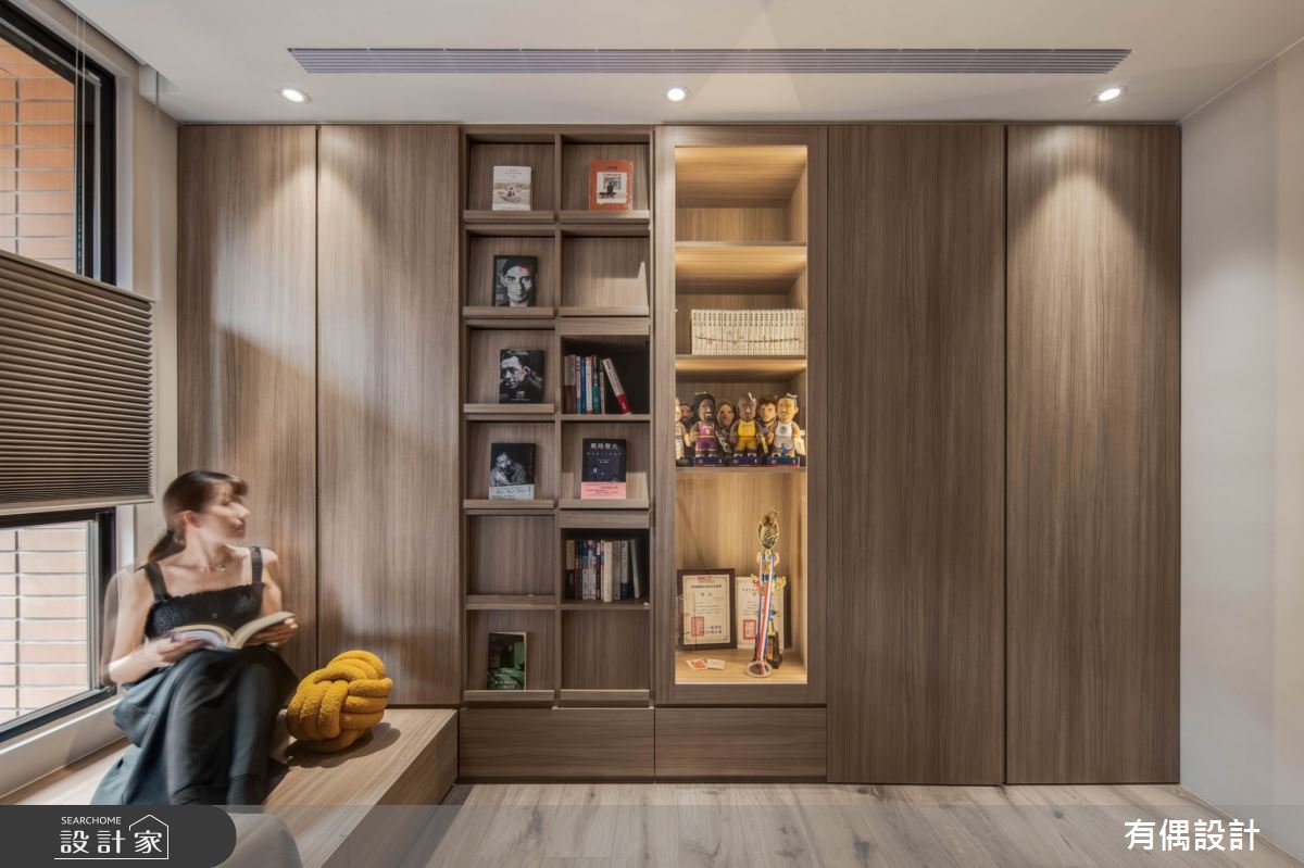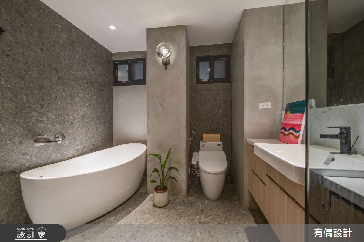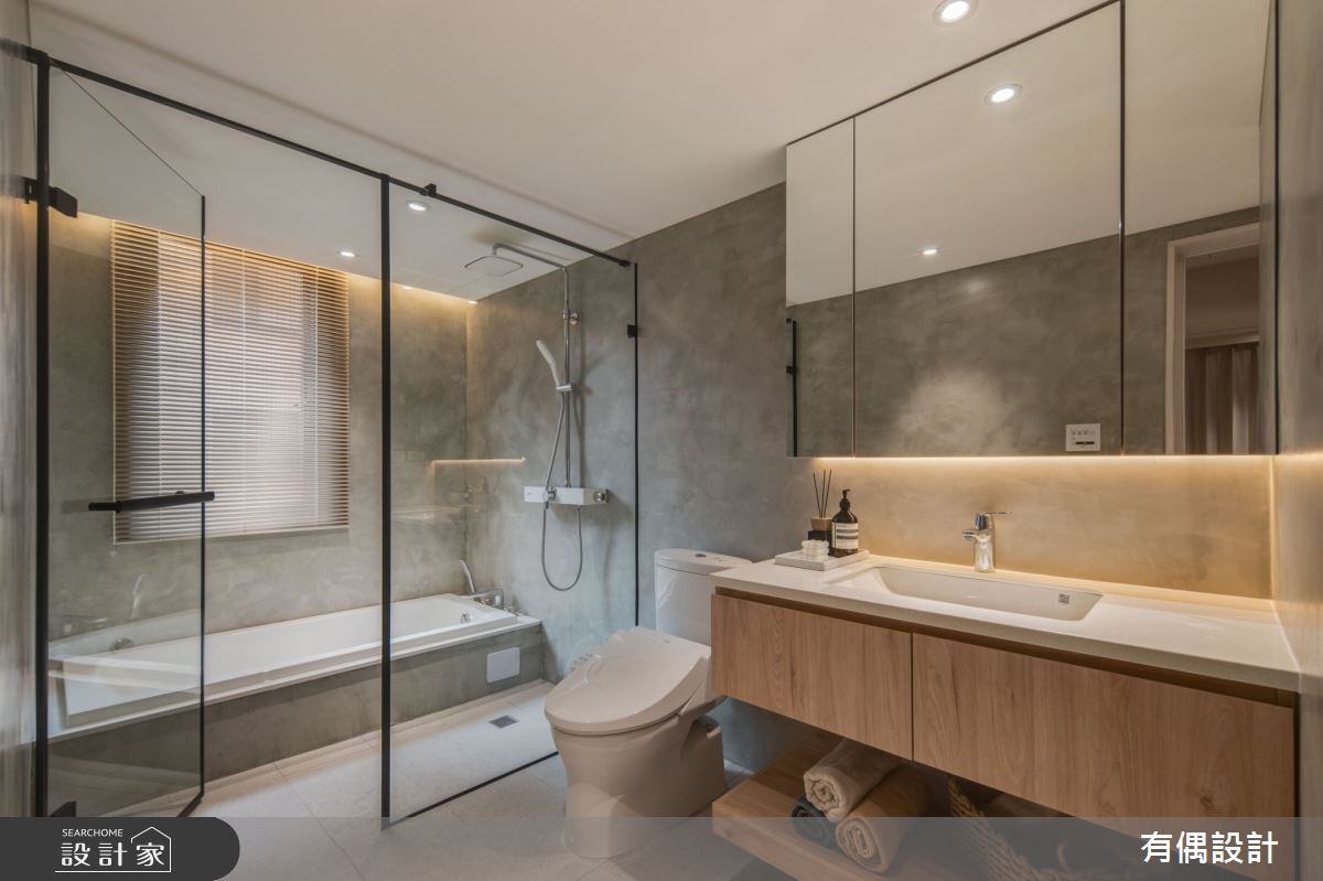 由有偶設計精心規劃的19坪一房住宅空間。因應屋主需求,設計師運用現代風作為主軸,搭配水泥漆、超耐磨木地板、木百葉,打造全家人的夢想家居。