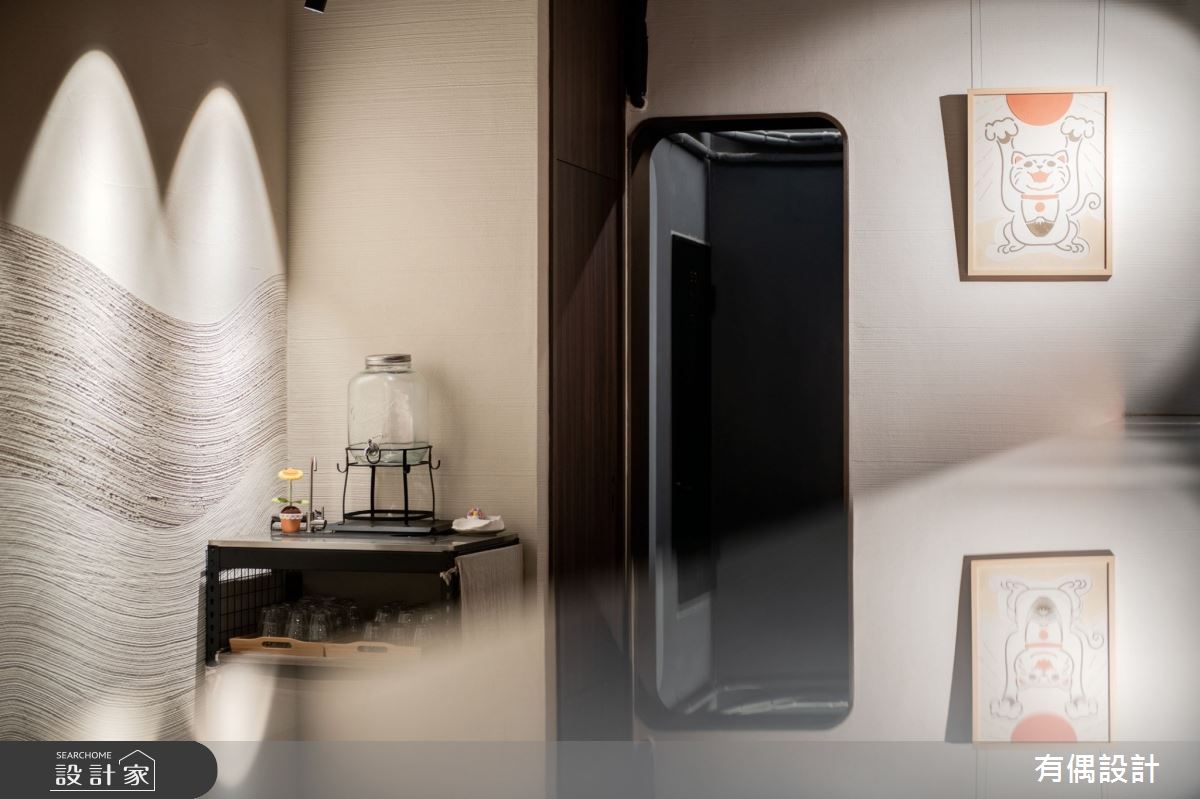 有偶設計以水泥漆、藝術漆的搭配應用,呈現日式風的風格氣息,將此間19坪老屋(31~40年)優雅詮釋成舒適愜意的商業空間。